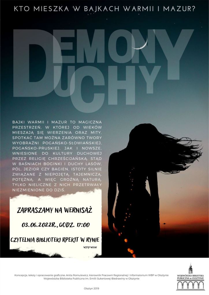 Wystawa „Demony, duchy. Kto mieszka w bajkach Warmii i Mazur” prezentuje wybór legendarnych i baśniowych postaci, stworzeń i upiorów, znanych z warmińskich i mazurskich gadek oraz powiastek ludowych.