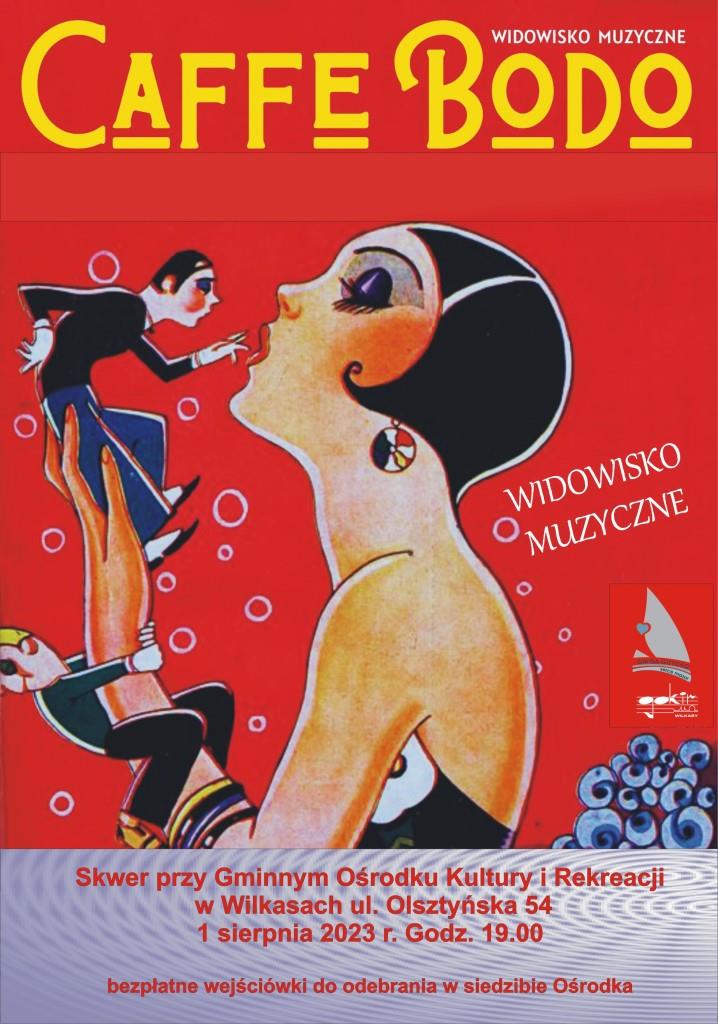 Caffe Bodo – 1 sierpnia (wtorek), skwer przy GOKiR Wilkasy, początek o godzinie 19:00. Bezpłatne wejściówki do odebrania w GOKiR Wilkasy.