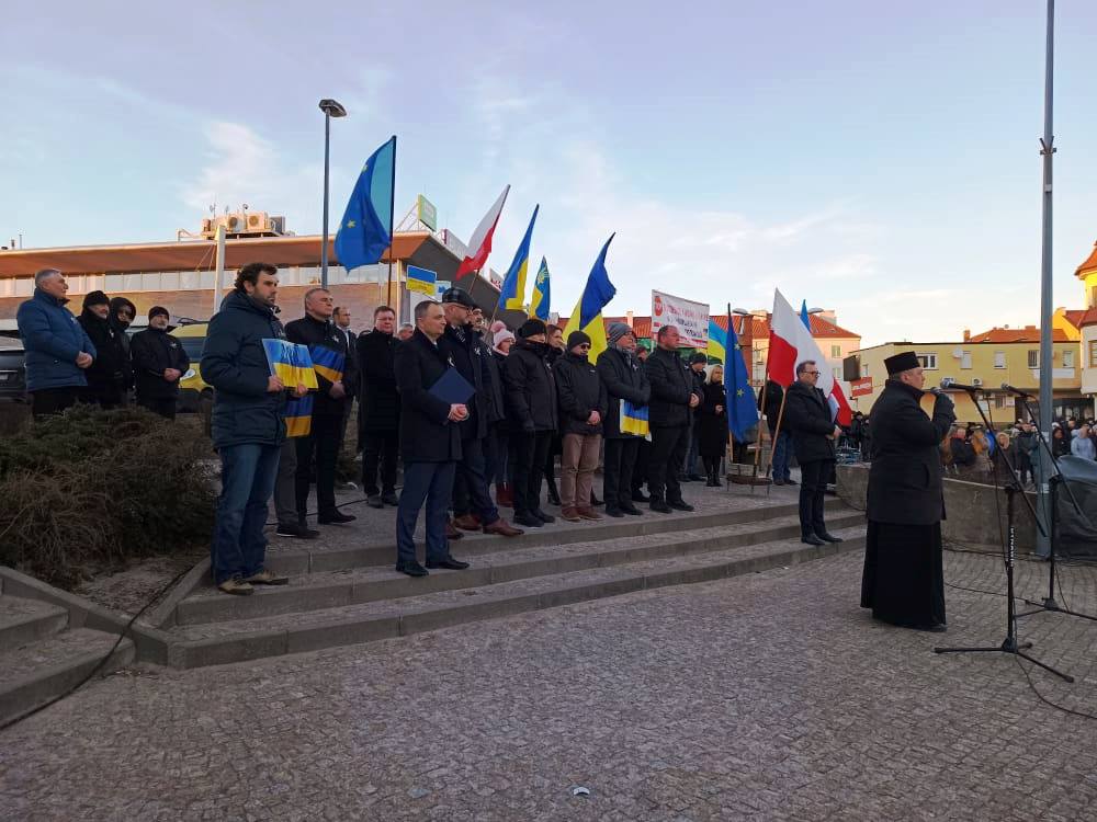– „Dzisiejsza nasz obecność pokazuje, że to, co dzieje się na Ukrainie nie jest nam obojętne. Nie godzimy się na to, co robi Rosja na czele, myślę, że można powiedzieć, z szaleńczym Putinem. Szaleńczym, ponieważ nikt się nie spodziewał, że atak na Ukrainę nastąpi” – podkreślił poseł Wojciech Kossakowski