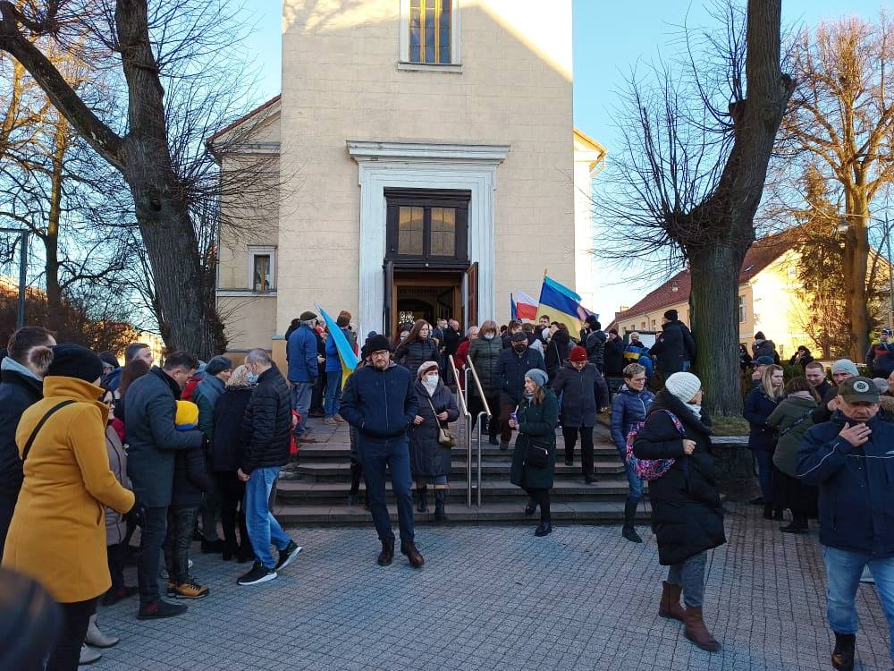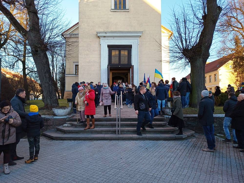 W niedzielę 27 lutego kilka minut po godzinie 16:00 na Pasażu Portowym w Giżycku odbył się wiec poparcia dla Ukrainy, zaatakowanej przez Rosję. Wiec poprzedziło nabożeństwo w Kościele Ewangelicko-Augsburskim zorganizowane z inicjatywy duszpasterzy różnych wyznań z giżyckich kościołów.