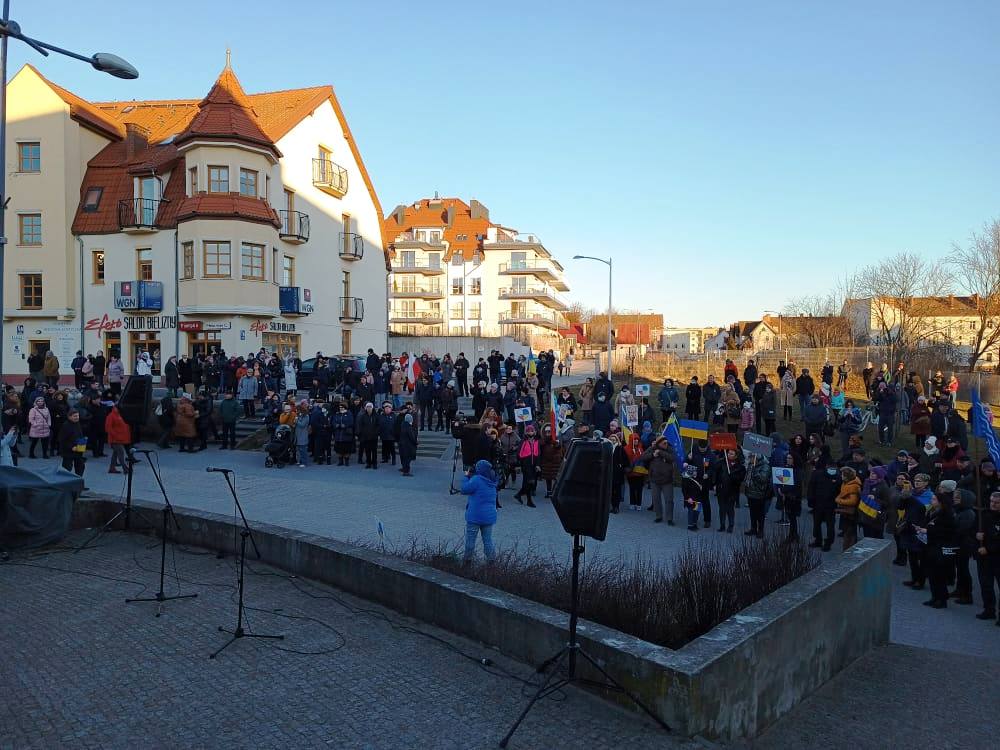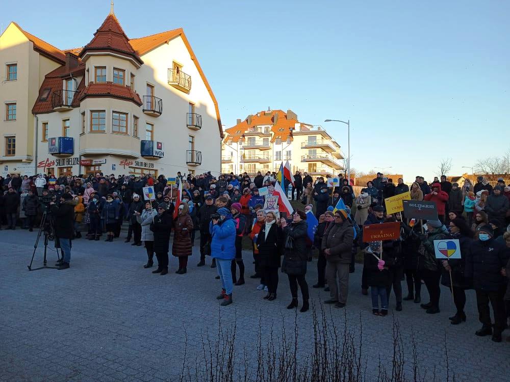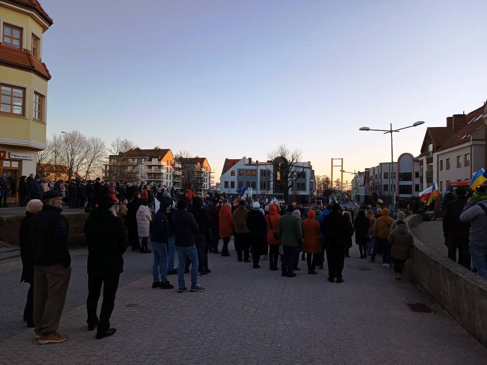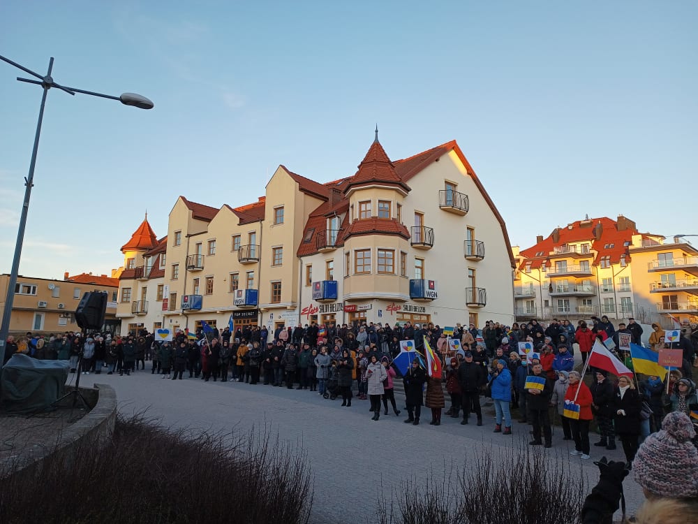 Kilkaset osób, mieszkańcy Giżycka, powiatu giżyckiego, lokalni samorządowcy, parlamentarzyści, Polacy i Ukraińcy zebrali się na Pasażu Portowym, aby wspólnie manifestować przeciwko wojnie na Ukrainie. Było wiele emocji, łzy, ale również wyrazy podziwu dla ukraińskiej armii.
