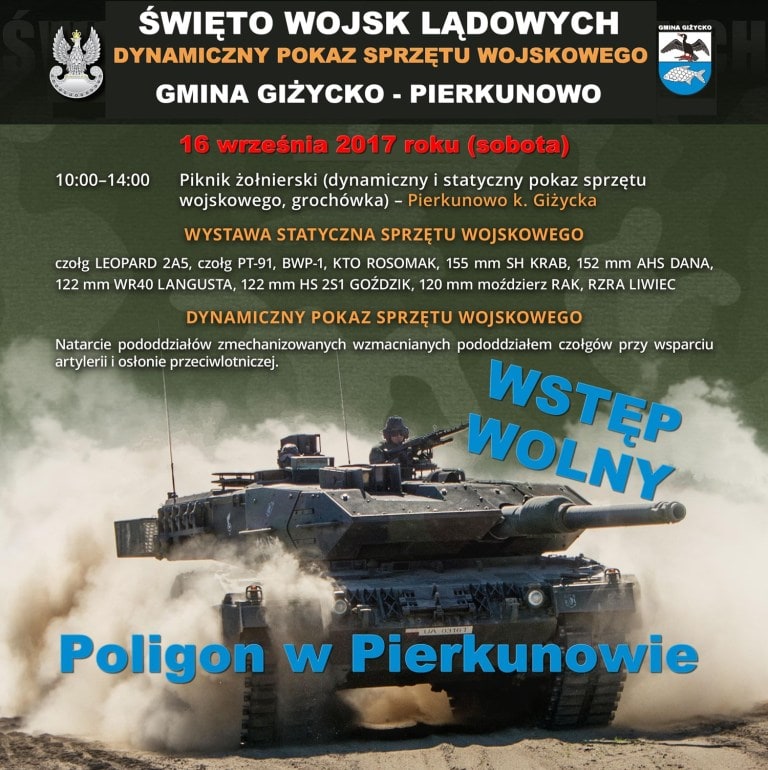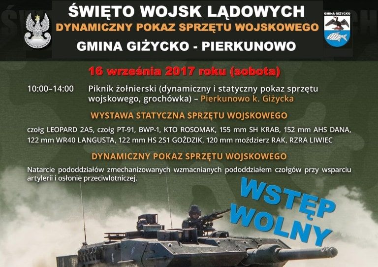 Sobota 16 września 2017 r. godz. 10:00 – 14:00 PIERKUNOWO POLIGON – Gmina Giżycko.