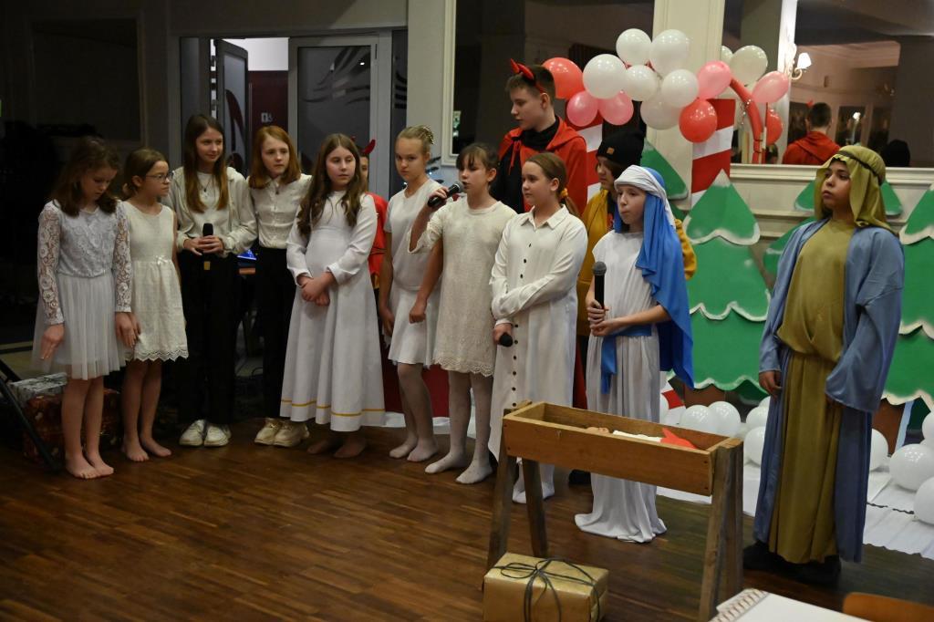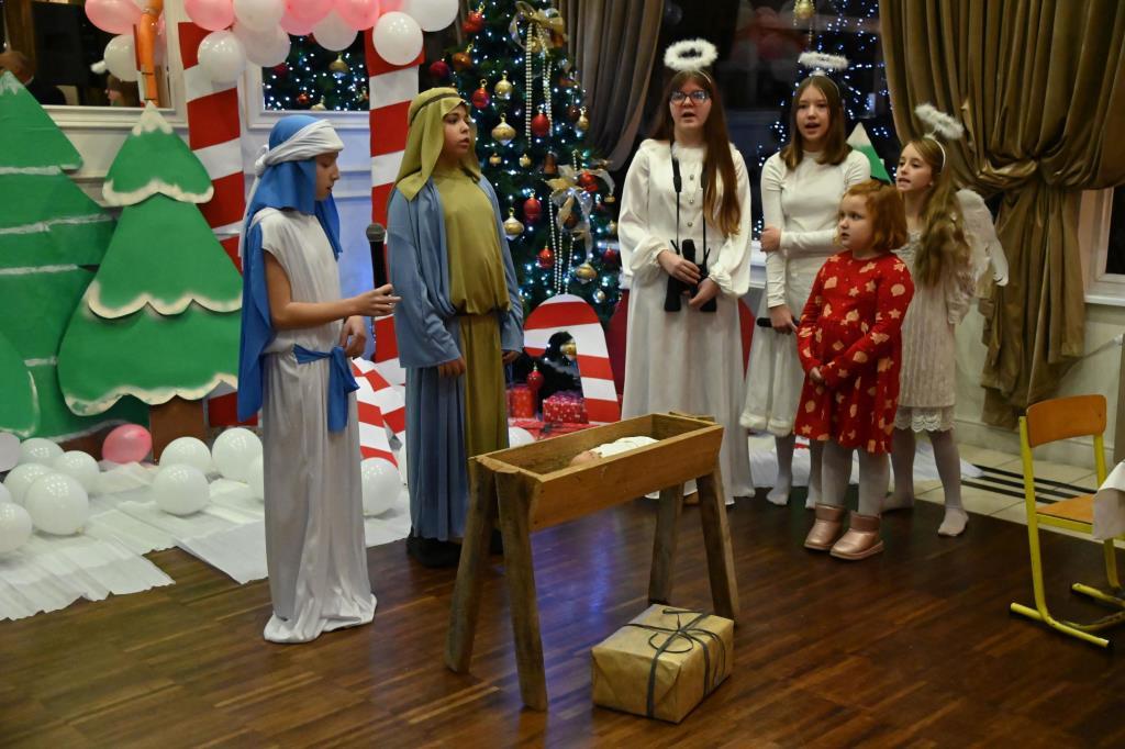 Spotkanie rozpoczęły przedświąteczne, wystawione po raz pierwszy Jasełka w wykonaniu uczniów Szkoły Podstawowej w Spytkowie, za które młodzi aktorzy zebrali wielkie brawa. Z życzeniami świątecznymi przemówił do zebranych na sali Marek Jasudowicz, wójt gminy Giżycko. Przemiłe słowa bożego błogosławieństwa przekazał przybyłym proboszcz parafii św. Maksymiliana Marii Kolbego w Giżycku ks. Kazimierz Gryboś w imieniu duszpasterzy wyznań rzymsko- i greckokatolickiego. Dalszą część imprezy mającej na celu nawiązywanie nowych kontaktów, integrację i wymianę doświadczeń wśród obecnych wypełniło łamanie się opłatkiem i składanie sobie tradycyjnych życzeń zdrowia, radości i wypełnionych miłością codziennych chwil.