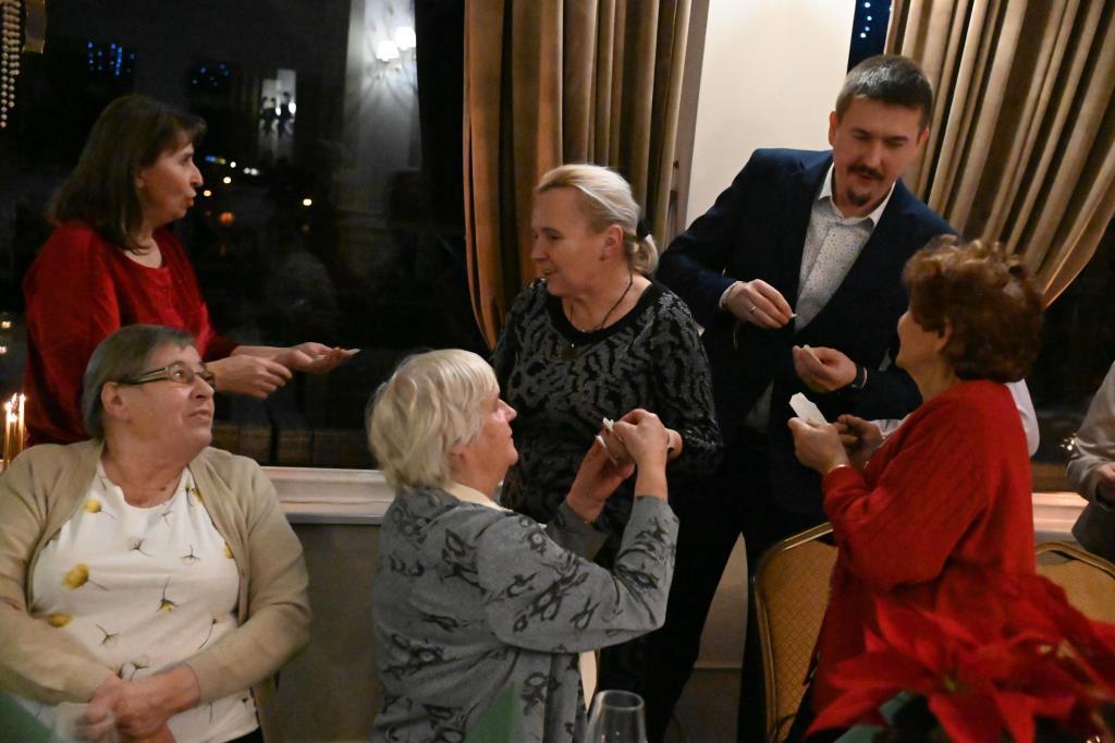 Za pięknie przystrojonymi stołami towarzyszyli im przedstawiciele władz, radni, sołtysi oraz duszpasterze różnych wyznań. Lokal szybciutko wypełnił się gwarem seniorów, którzy nie ukrywali, że zaproszenie ich na wigilijną wieczerzę ma duże znaczenie, gdyż w takim gronie niezmiernie rzadko mają okazję przebywać.