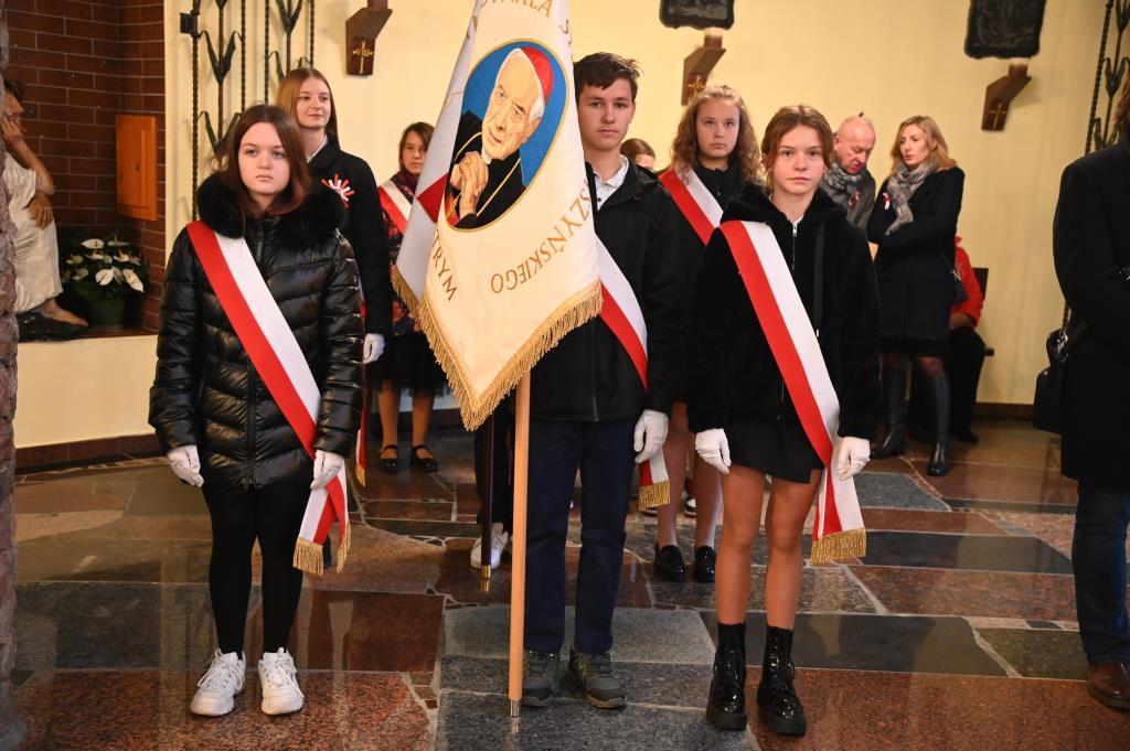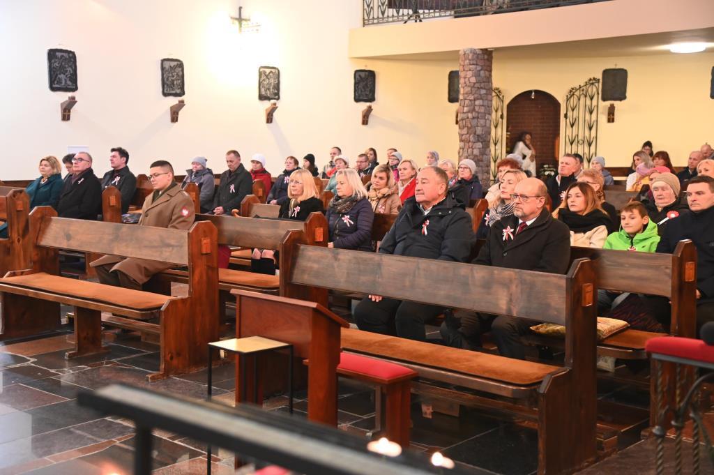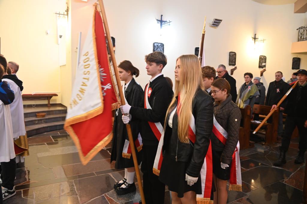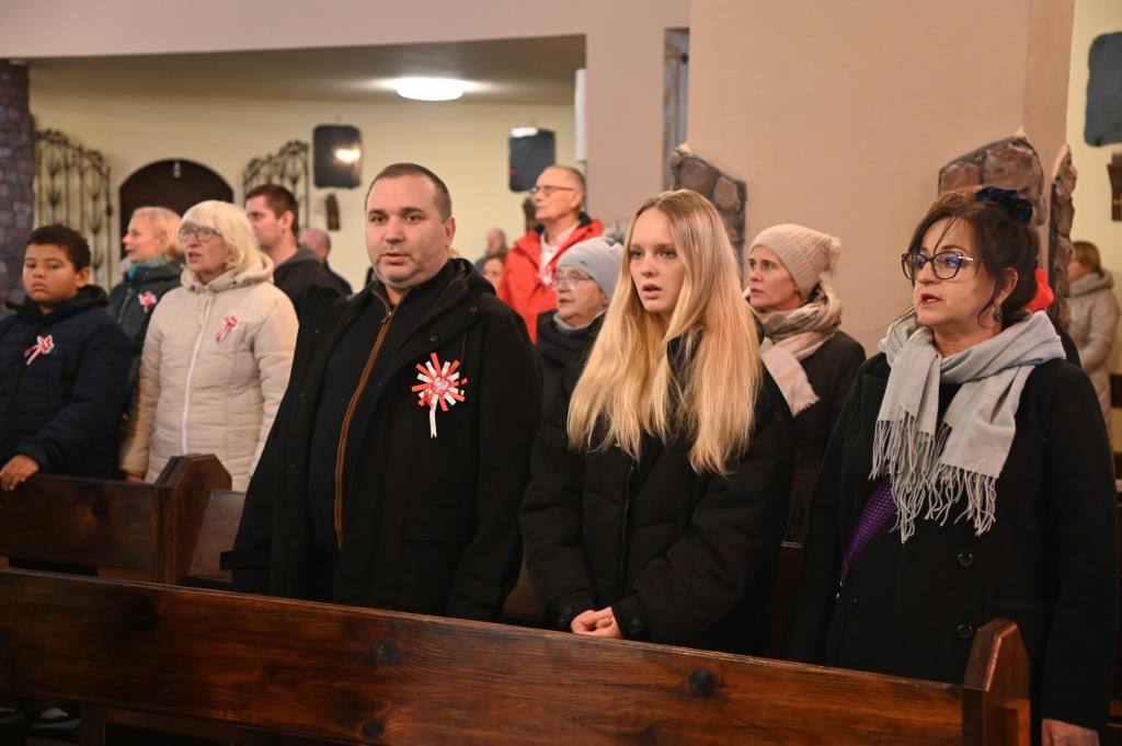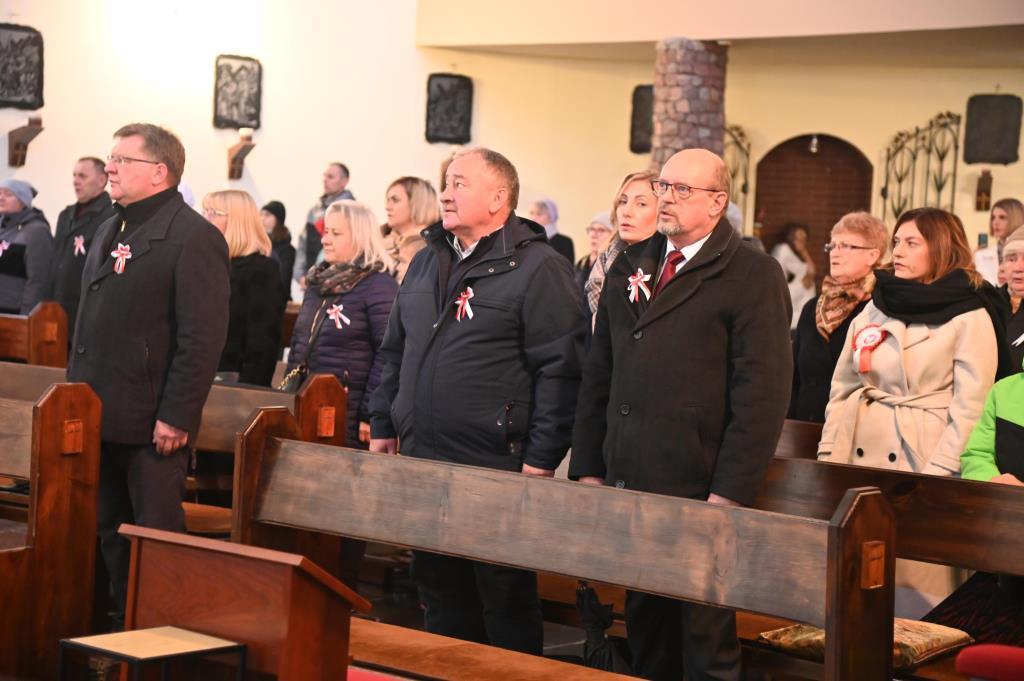 W sobotę z kolei w samo południe w kościele św. Jadwigi Królowej w Bystrym odbyła się uroczysta msza święta celebrowana przez proboszcza parafii księdza Mirosława Sorbaja z udziałem pocztów sztandarowych szkół podstawowych w Wilkasach, Upałtach, Bystrym oraz Spytkowie, a także druhów z Komendy Hufca ZHP. Każdy z wiernych otrzymał przed wejściem do świątyni pamiątkowy kotylion, który przyczepiał do odzieży. Po godzinie pod tablicą ku czci walczącym o wolność Polski stanęła asysta honorowa żołnierzy 41 Giżyckiego Batalionu Lekkiej Piechoty Wojsk Obrony Terytorialnej i pięć wymienionych pocztów, a delegacje samorządu, radnych, nauczycieli, księży i mieszkańców złożyły wiązanki kwiatów stawiając także zapalone znicze. Wójt Marek Jasudowicz i radni wiązankę złożyli również pod pamiątkową tablicą na ścianie świątyni w Wilkasach.