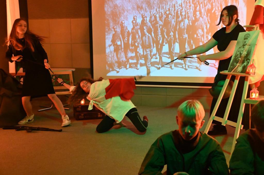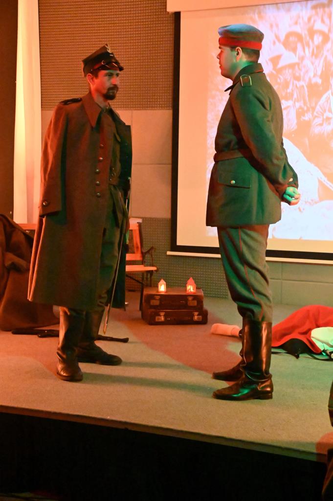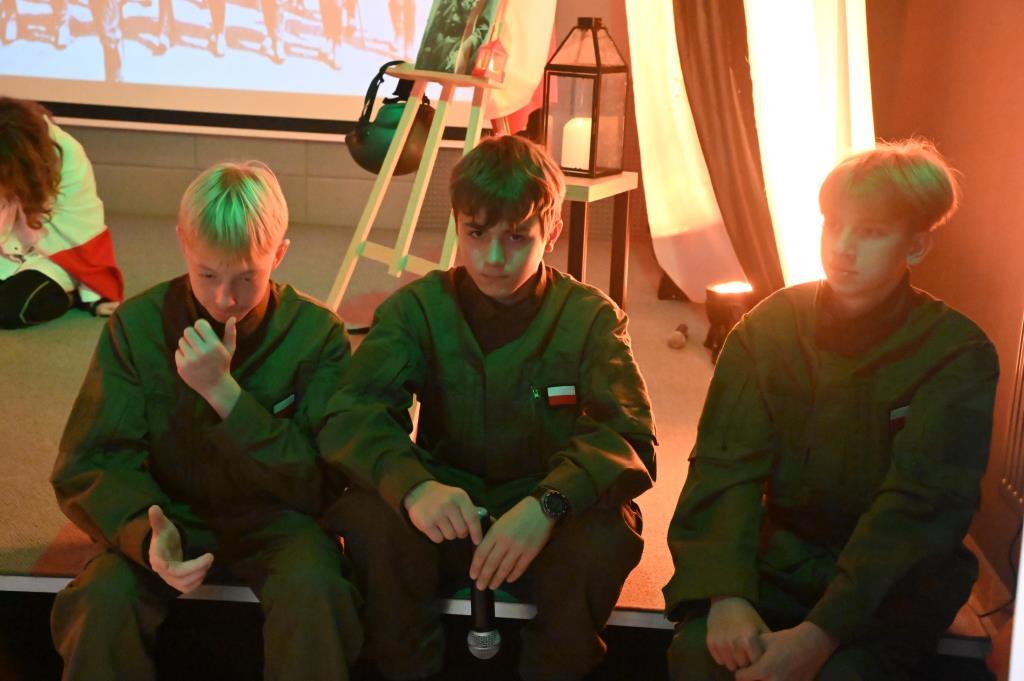 Gościnnie wystąpili członkowie grupy rekonstrukcyjnej z Twierdzy Boyen w Giżycku, a na widowni w trakcie trzech odsłon przedstawienia znaleźli się wszyscy uczniowie szkoły oraz ich rodzice. Miłym akcentem uroczystości w sali konferencyjnej Gminnego Ośrodka Kultury i Rekreacji było wspólne odśpiewanie dokładnie o godz. 11.11 hymnu narodowego w ramach akcji „Szkoła do hymnu”, w którym wzięli udział wójt gminy Marek Jasudowicz i wicewójt Ewa Sobieska. Muzycznie spektakl ubarwiły utwory z repertuaru m.in. Ireny Santor, Michała Bajora i Tadeusza Woźniaka.