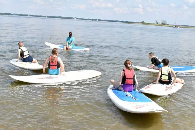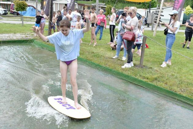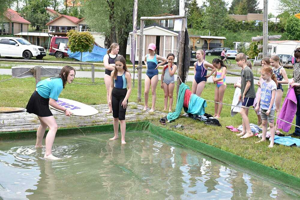 Sprawdzali swe umiejętności na równoważni, pod okiem animatora Andrzeja Lemieszka jeździli na nartach po trawie, chodzili na szczudłach, rzucali lotkami do tarczy oraz biegali na czas w workach. Na torze skimboardingowym pływali na małych deskach, uczyli się podstaw windsurfingu „na sucho”, aby później spróbować swych sił na niezmąconym żadnymi falami Niegocinie.