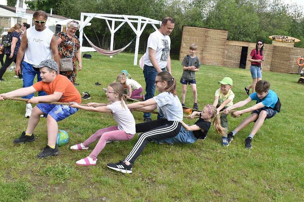 „Tęczowy pociąg rusza” to impreza integracyjna, która co roku przyciąga do Wioski Surfów nad jeziorem Niegocin w Wilkasach tłumy podopiecznych animatorów świetlic wiejskich z gminy Giżycko. Tak było i w minioną sobotę, o czym świadczy nowy rekord frekwencji wynoszący 116 osób. Dzieciaki świetnie się bawiły, obchodząc w ten sposób swoje coroczne czerwcowe święto.