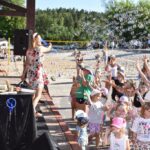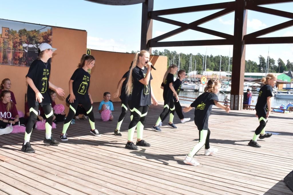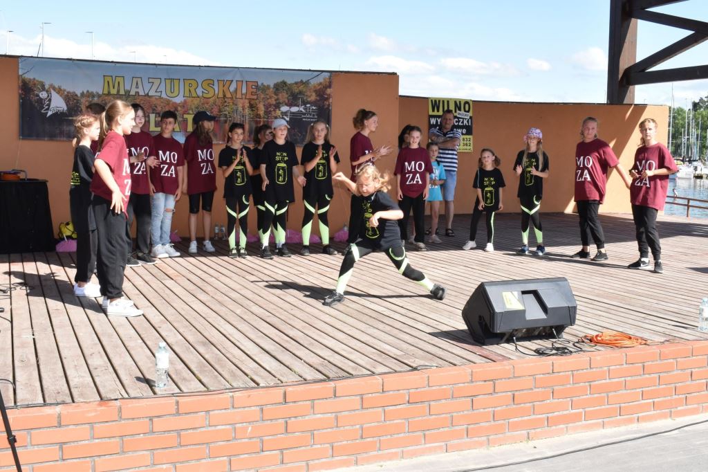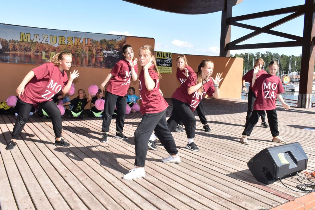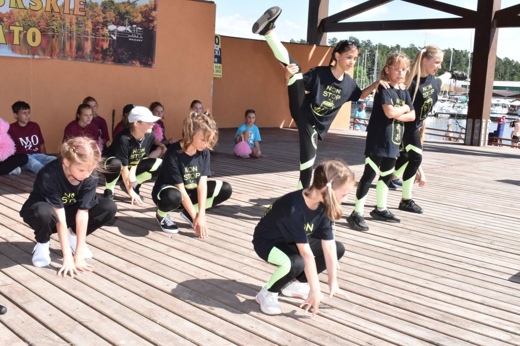 Na scenie amfiteatru nad jeziorem Niegocin zabłysły wspaniale przygotowane przez instruktorkę Barbarę Somionkę formacje taneczne w swoich pięknych układach, był też czas na przegląd twórczości zespołu Extrime Kids & Extrime Girls z Ośrodka Kultury w Miłkach.