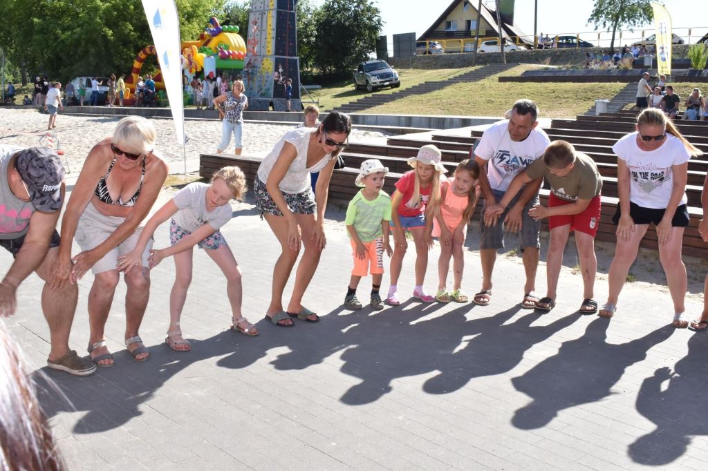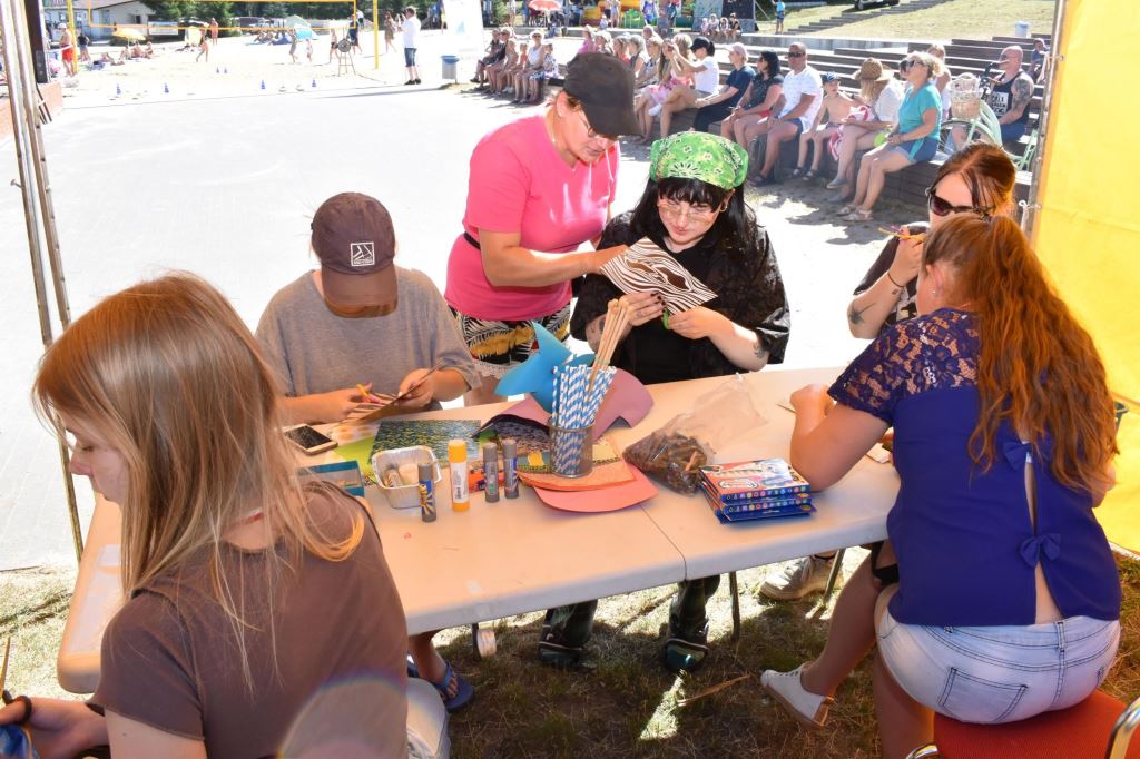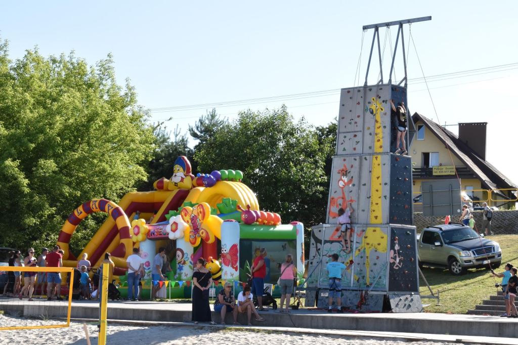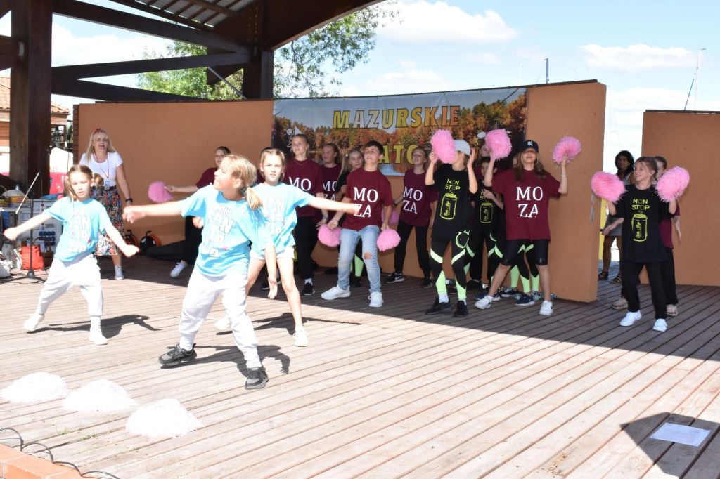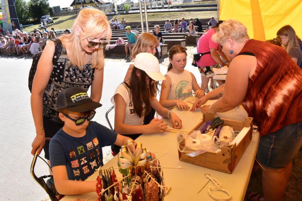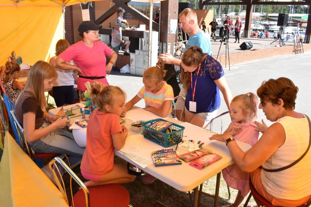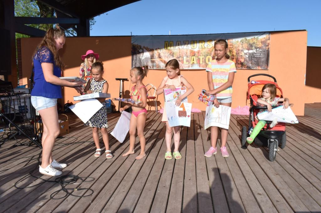 Przygotowała również wiele konkursów dla dzieci z rodzicami, dlatego pod sceną dorośli musieli tańczyć i robić przeróżne „wygibasy”. Na stoiskach animatorek GOKiR najmłodsi uczyli się techniki makramy, robili motylki i wykonywali swoje prace na konkurs plastyczny „Mazurskie Lato”. Wyjątkowym wzięciem cieszyły się też wielkie „dmuchańce” z postaciami z bajek i zjeżdżalnia oraz mobilna ścianka wspinaczkowa, do której non stop stała spora kolejka, zaś małżeństwo instruktorów Anna i Zbigniew Pażyszkowie uwijali się jak w ukropie.