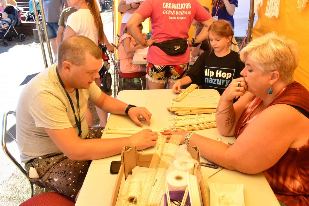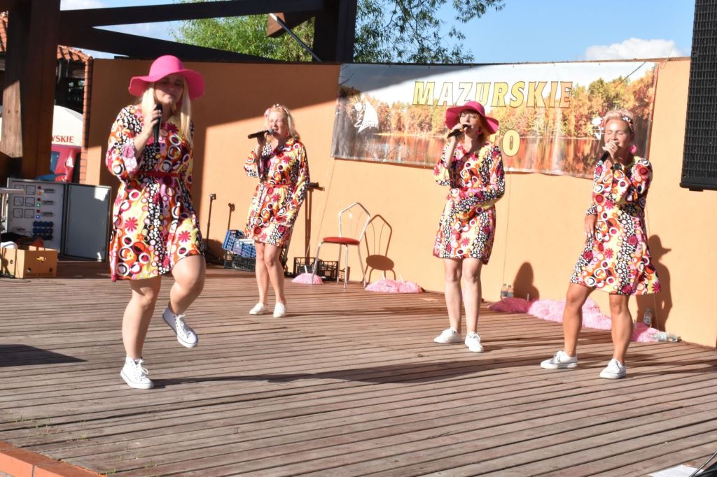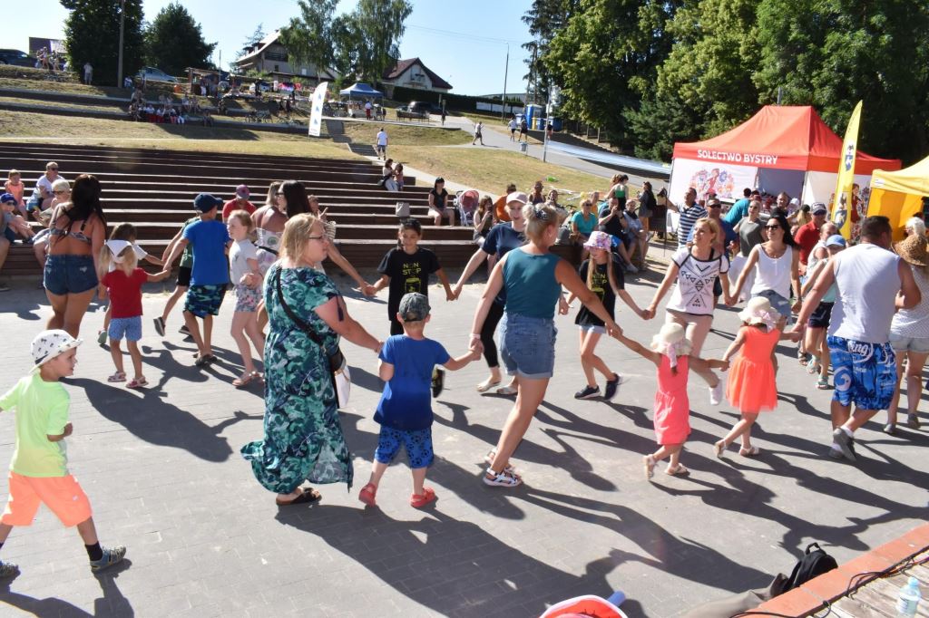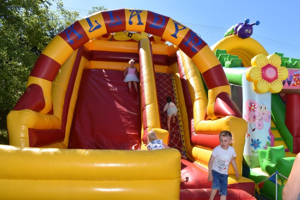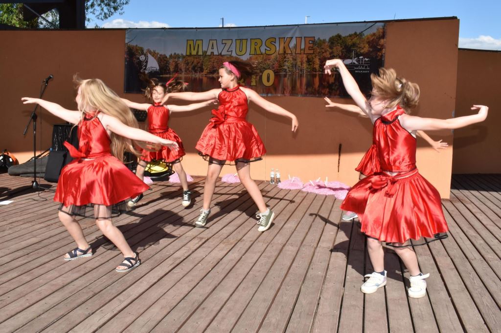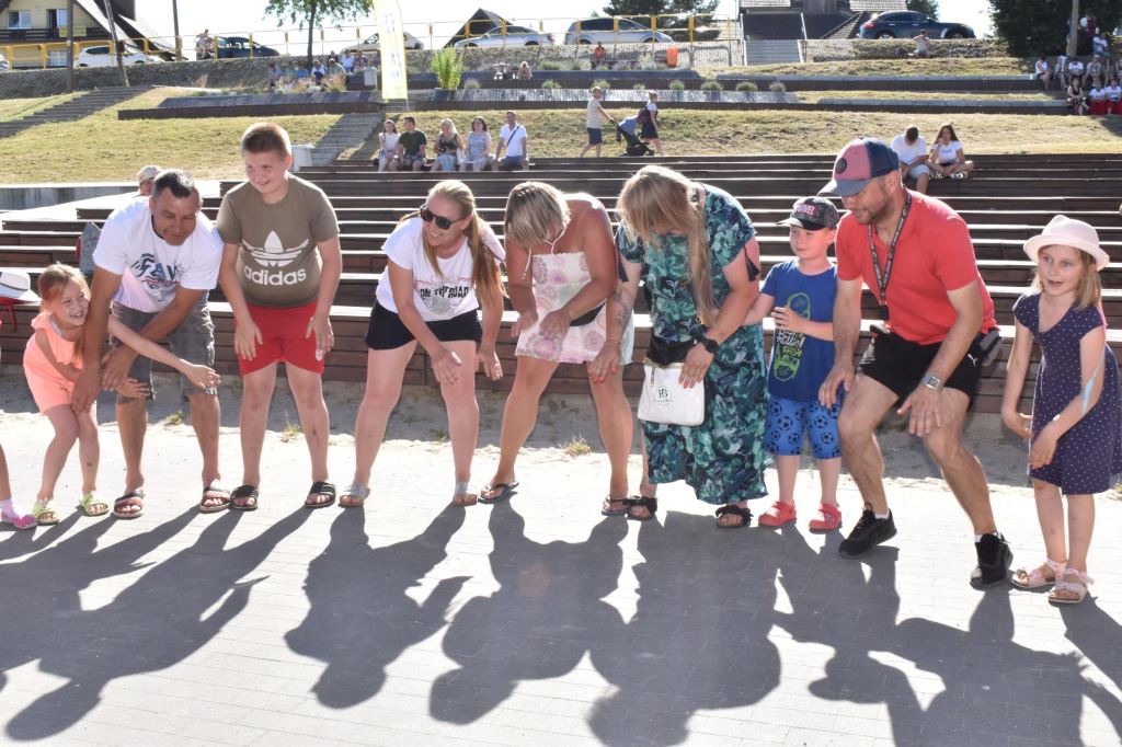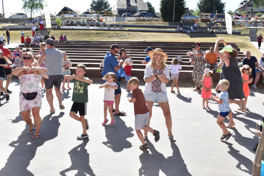 Przygotowała również wiele konkursów dla dzieci z rodzicami, dlatego pod sceną dorośli musieli tańczyć i robić przeróżne „wygibasy”. Na stoiskach animatorek GOKiR najmłodsi uczyli się techniki makramy, robili motylki i wykonywali swoje prace na konkurs plastyczny „Mazurskie Lato”. Wyjątkowym wzięciem cieszyły się też wielkie „dmuchańce” z postaciami z bajek i zjeżdżalnia oraz mobilna ścianka wspinaczkowa, do której non stop stała spora kolejka, zaś małżeństwo instruktorów Anna i Zbigniew Pażyszkowie uwijali się jak w ukropie.