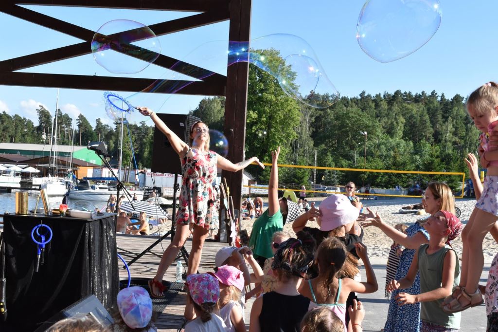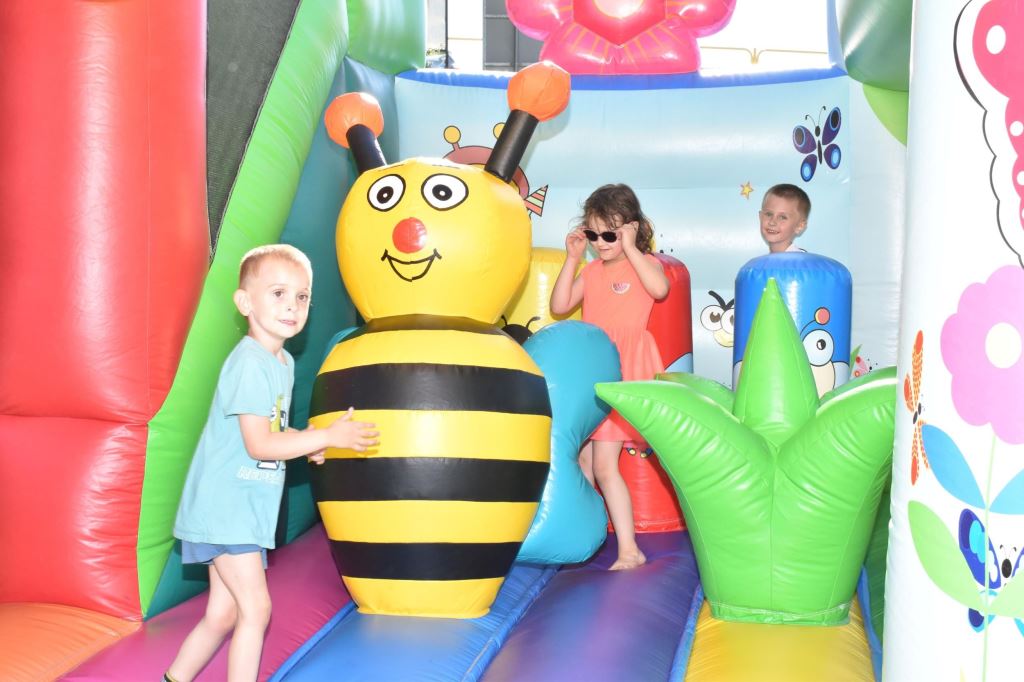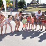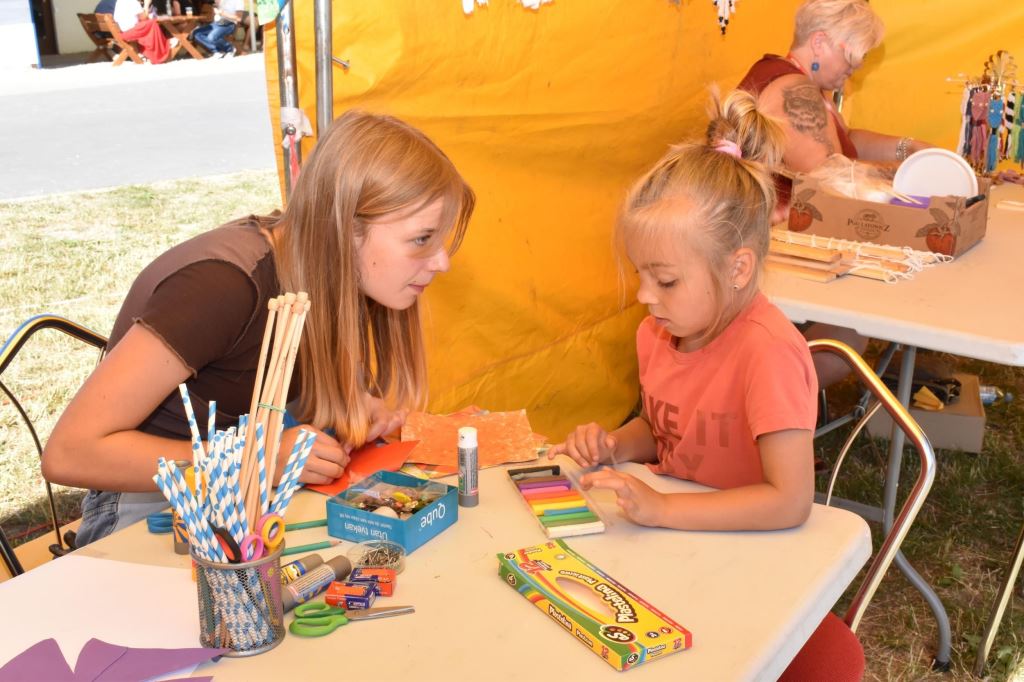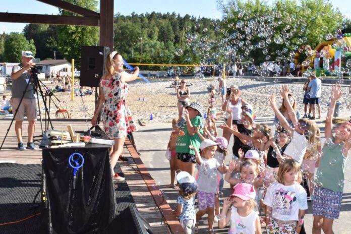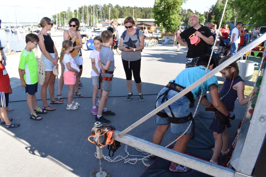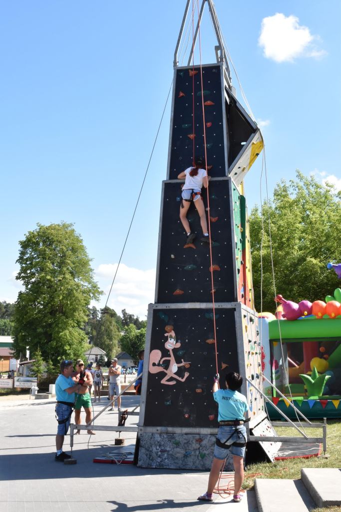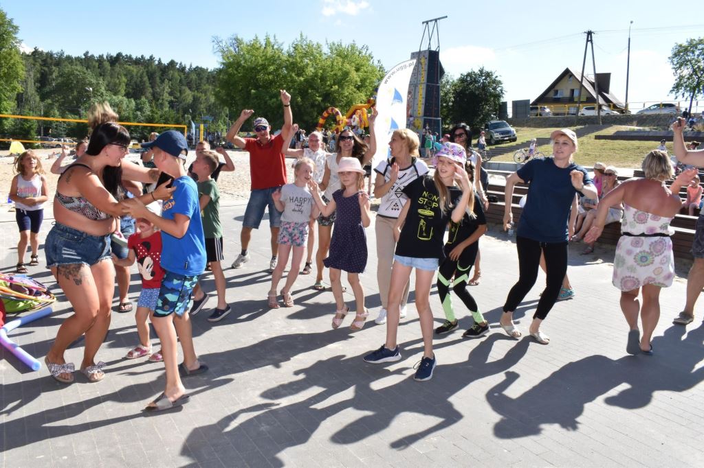 Przygotowała również wiele konkursów dla dzieci z rodzicami, dlatego pod sceną dorośli musieli tańczyć i robić przeróżne „wygibasy”. Na stoiskach animatorek GOKiR najmłodsi uczyli się techniki makramy, robili motylki i wykonywali swoje prace na konkurs plastyczny „Mazurskie Lato”. Wyjątkowym wzięciem cieszyły się też wielkie „dmuchańce” z postaciami z bajek i zjeżdżalnia oraz mobilna ścianka wspinaczkowa, do której non stop stała spora kolejka, zaś małżeństwo instruktorów Anna i Zbigniew Pażyszkowie uwijali się jak w ukropie.