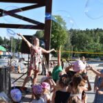 W niedzielę, 3 lipca z koncertem przyjechali też goście z Bań Mazurskich – młodzieżowa grupa wokalna i chór Lisiacy. Szereg atrakcyjnych animacji dla dzieci przygotowała jak zwykle niezawodna Anna Miękina „Party Time”. Było więc malowanie farbami na rozwieszonej między słupami stretch folii, malowanie buziek oraz świetny, przyjmowany zawsze z zachwytem artystyczny pokaz baniek mydlanych, z którym tradycyjnie dynamiczna Ania na żądanie najmłodszych musiała bisować.