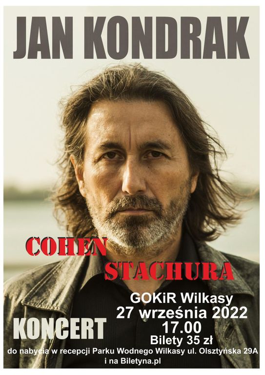 Artysta z klasą sięga po klasykę piosenki autorstwa Leonarda Cohena, Boba Dylana, Edwarda Stachury, Bułata Okudżawy, Włodzimierza Wysockiego, Stinga czy Jacka Kaczmarskiego. Już 27 września zawita na wyjątkowy koncert w gościnne mury Gminnego Ośrodka Kultury i Rekreacji w Wilkasach, początek recitalu o godz. 17.00.