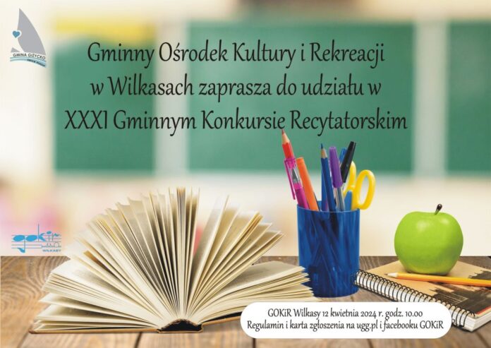 Już 12 kwietnia 2024 r. w galerii „Pod lipą” Gminnego Ośrodka Kultury i Rekreacji w Wilkasach spotkają się wszyscy, którym zależy na podtrzymywaniu piękna naszego języka w codziennej mowie. Wystartują w ramach XXXI już Gminnego Konkursu Recytatorskiego w trzech grupach wiekowych (uczniowie kl. I-III, IV-VI oraz VII-VIII szkół podstawowych) recytując wybrany przez siebie wiersz.