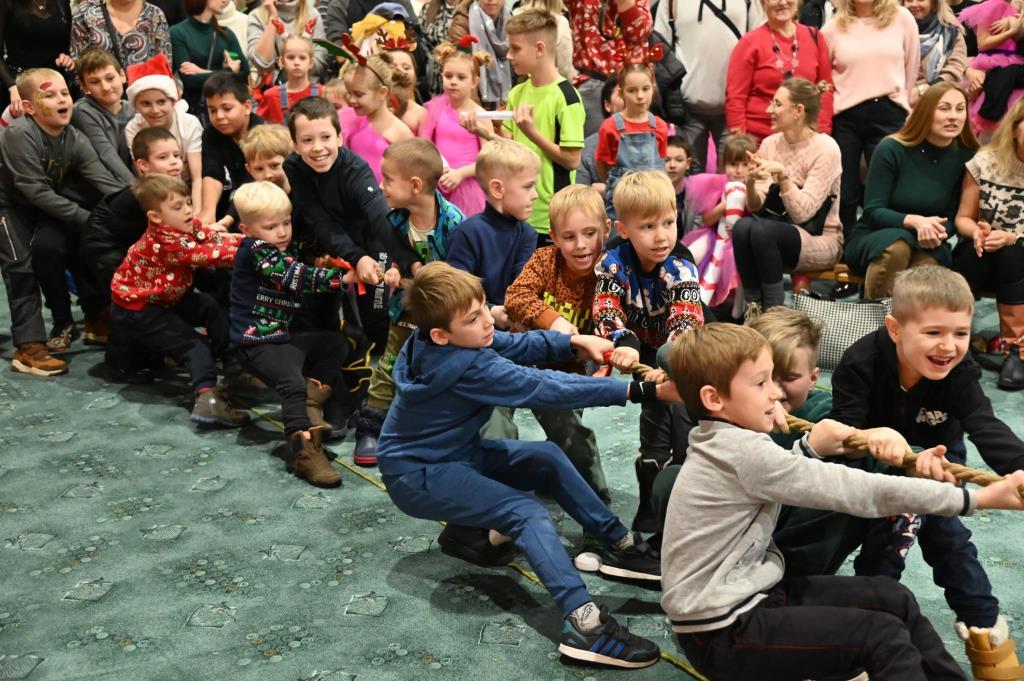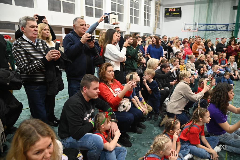 Publiczność bawiła się świetnie, a najmłodsi mieli niesamowitą frajdę spotkać się oko w oko z przybyszem z Laponii i jego towarzyszką Zimą, przywitać się z nimi i zrobić pamiątkową fotkę. Tradycyjnie wielu chętnych zgłosiło się do gier i zabaw z animatorami, a przeciąganie liny, rzucanie srebrnymi kulami do wiaderek i bieg w kolorowych workach wypełniły wnętrze hali głośnymi okrzykami i dopingiem.