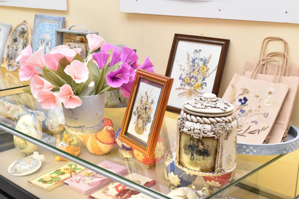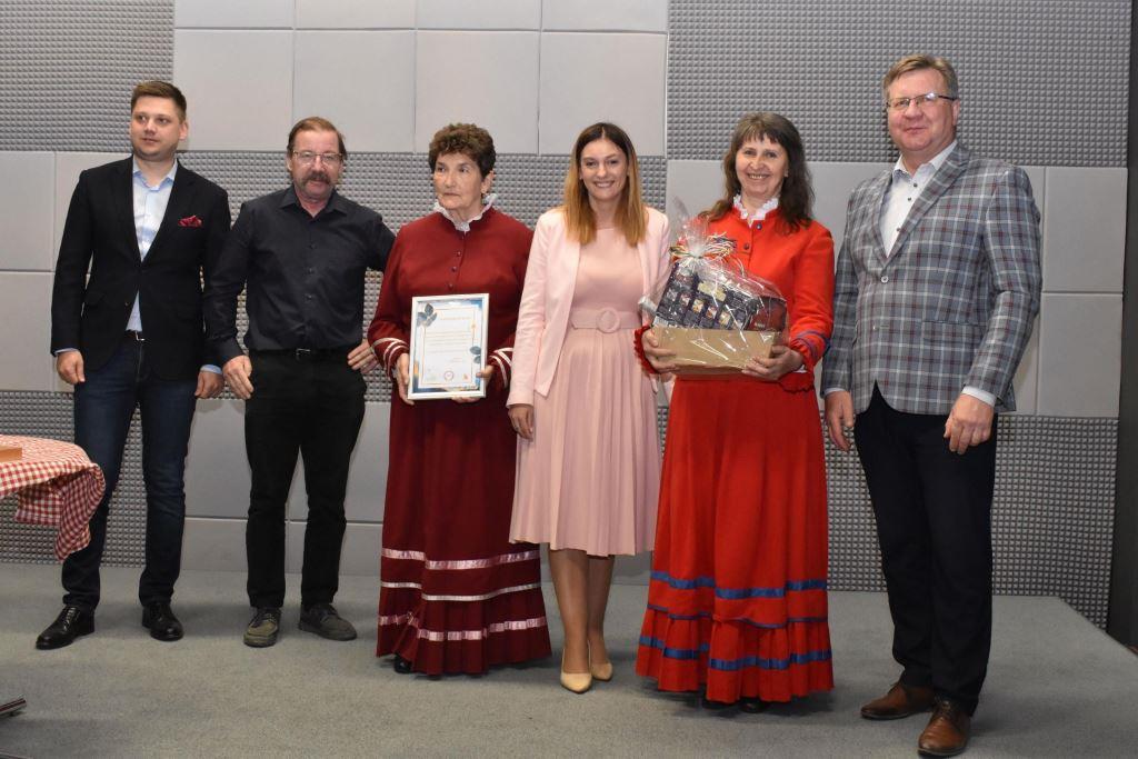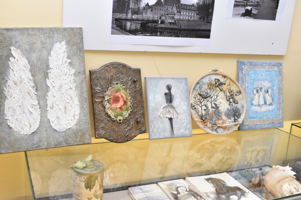 Imprezę uzupełniły nostalgiczne piosenki śpiewane przez Mirosławę Jurę z Klubu Seniora Gminy Giżycko: „Tomaszów” Ewy Demarczyk (miejsce urodzenia żony Juliana Tuwima) i „Miłość Ci wszystko wybaczy” Hanki Ordonówny. Miłym akcentem dla występujących w miniony piątek przedstawicieli gmin Ryn i Giżycko oraz GUTW były nad wyraz eleganckie, pamiątkowe koszyki z atrakcyjną zawartością. A na zakończenie w galerii „Pod lipą” czekały na obecnych piękne prace przygotowane przez kluby seniora z Pozezdrza, Rynu oraz GUTW. Można było się spodziewać, że rękodzieło, które wyszło z rąk seniorów, zachwyci każdego, ale to, co zobaczyliśmy, zdecydowanie przewyższało nasze wyobrażenie. A czego w gablotach nie było? Martwa natura na drewnie, przestrzenne obrazy, wyszywane kompozycje kwiatowe i zawieszki z decoupage, aniołki z włóczki, makrama czy wielkanocne stroiki.