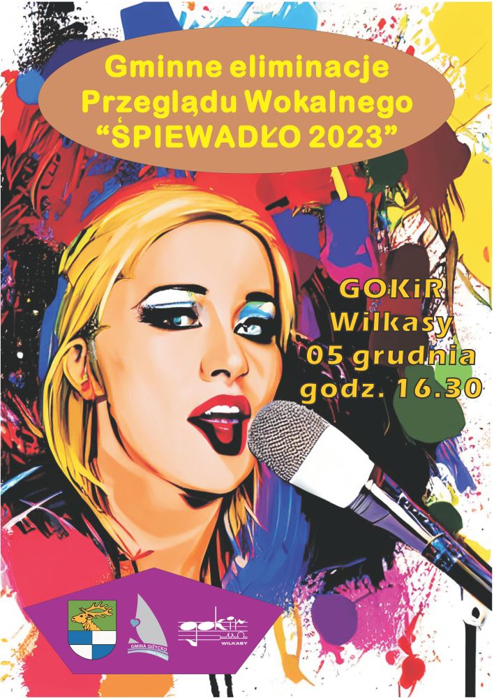 Do XXV edycji imprezy przystępuje, jak zawsze, GOKiR Wilkasy organizując w przeddzień mikołajek 5 grudnia (wtorek) o godz. 16.30 gminne eliminacje konkursu. Jeżeli chcesz wystartować to szybko przygotuj ulubioną przez siebie piosenkę w języku polskim, zgłoś ją do koordynatorki imprezy Barbary Somionki na adres e-mail: b.somionka@gokir.ugg.pl, tel. 600-822-112 i wypełnij kartę zgłoszeniową oraz prześlij jej skan, w miejscu imprezy przed jej rozpoczęciem dołączając podkład muzyczny na pendrive bądź płycie CD audio (bez elementów wokalnych). Termin nadsyłania zgłoszeń to 1 grudnia 2023.