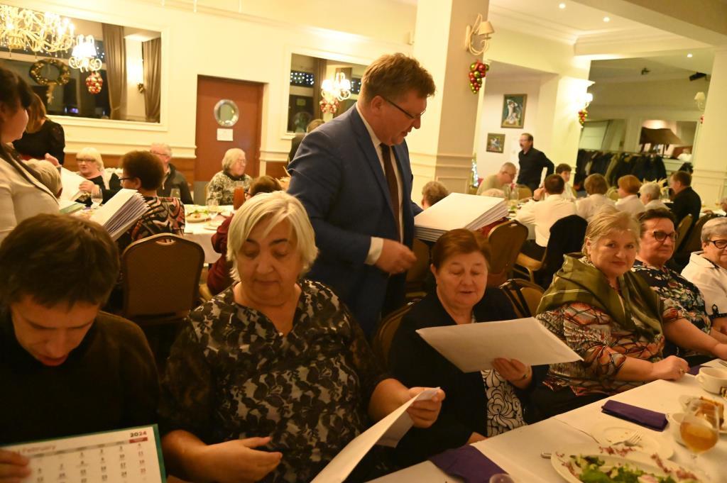 Miłym akcentem wigilijnego spotkania było wręczanie przez przedstawicieli władz nowego gminnego kalendarza ściennego. Spędzone w fantastycznej atmosferze dwie godziny imprezy przygotowanej na zaproszenie wójta Marka Jasudowicza były dla osób starszych i samotnych wspaniałą okazją na oderwanie się od kłopotów dnia codziennego, pozwoliły na nawiązanie nowych kontaktów, integrację i wymianę doświadczeń. Czas ten minął niesamowicie szybko i nieubłaganie nadeszła chwila powrotu do domów.