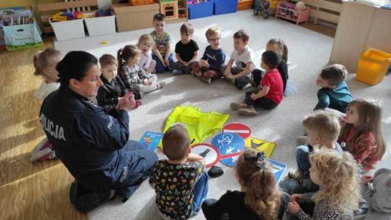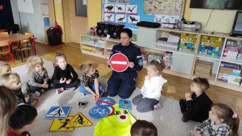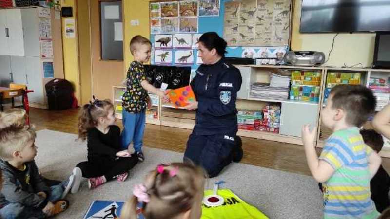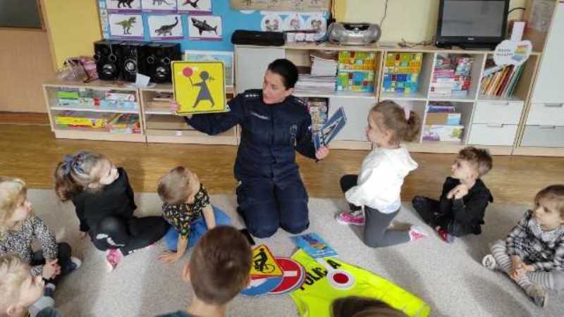 Policjantka opowiedziała dzieciom o tym, jak należy zachowywać się, gdy zaczepi nas ktoś obcy, przestrzegała dzieci przed przyjmowaniem od obcych jakichkolwiek prezentów oraz o konieczności wychodzenia z domu tylko pod opieką osoby dorosłej.