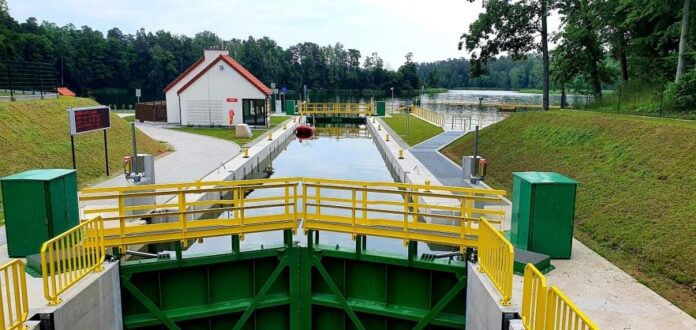 Od dziś (25.06.2020r.) wodniacy mogą korzystać z nowej śluzy Guzianka II w Rucianem-Nidzie, łączącej jeziora Guzianka Mała i Bełdany. Wody Polskie oddają do użytku obiekt, który usprawni ruch na Wielkich Jeziorach Mazurskich.