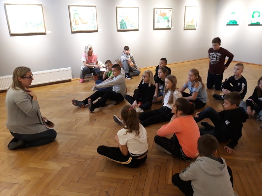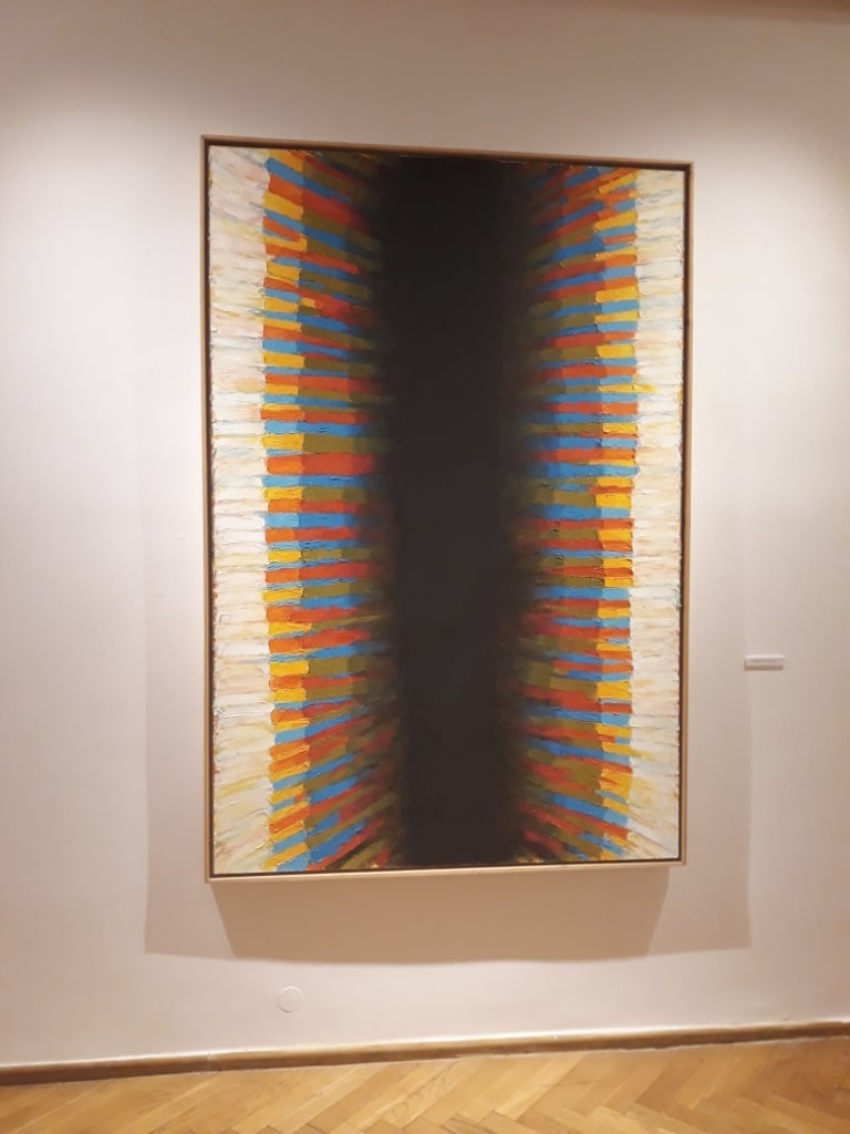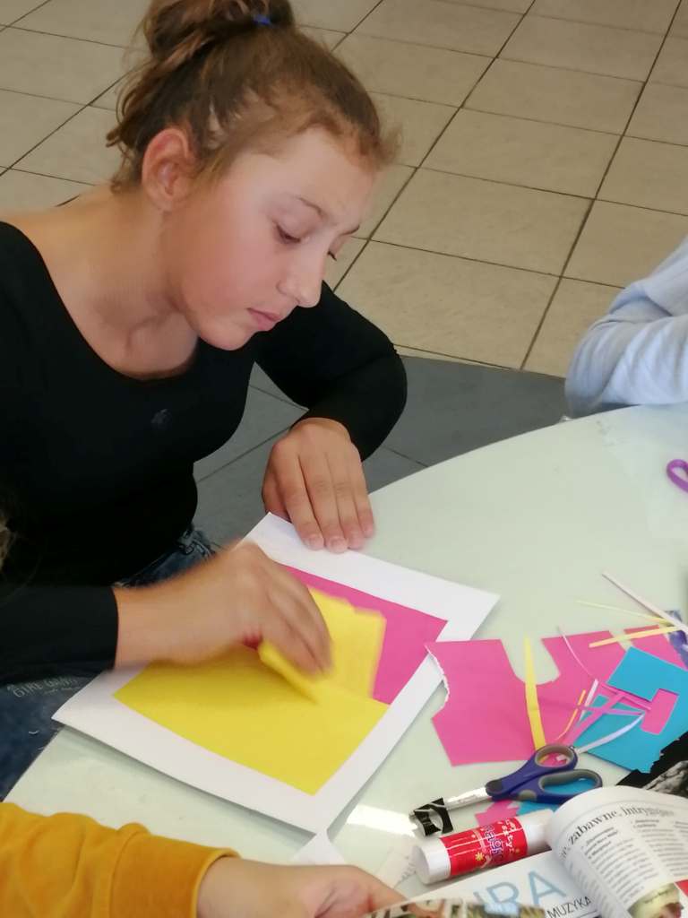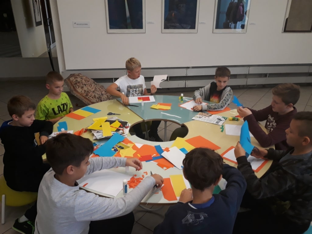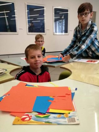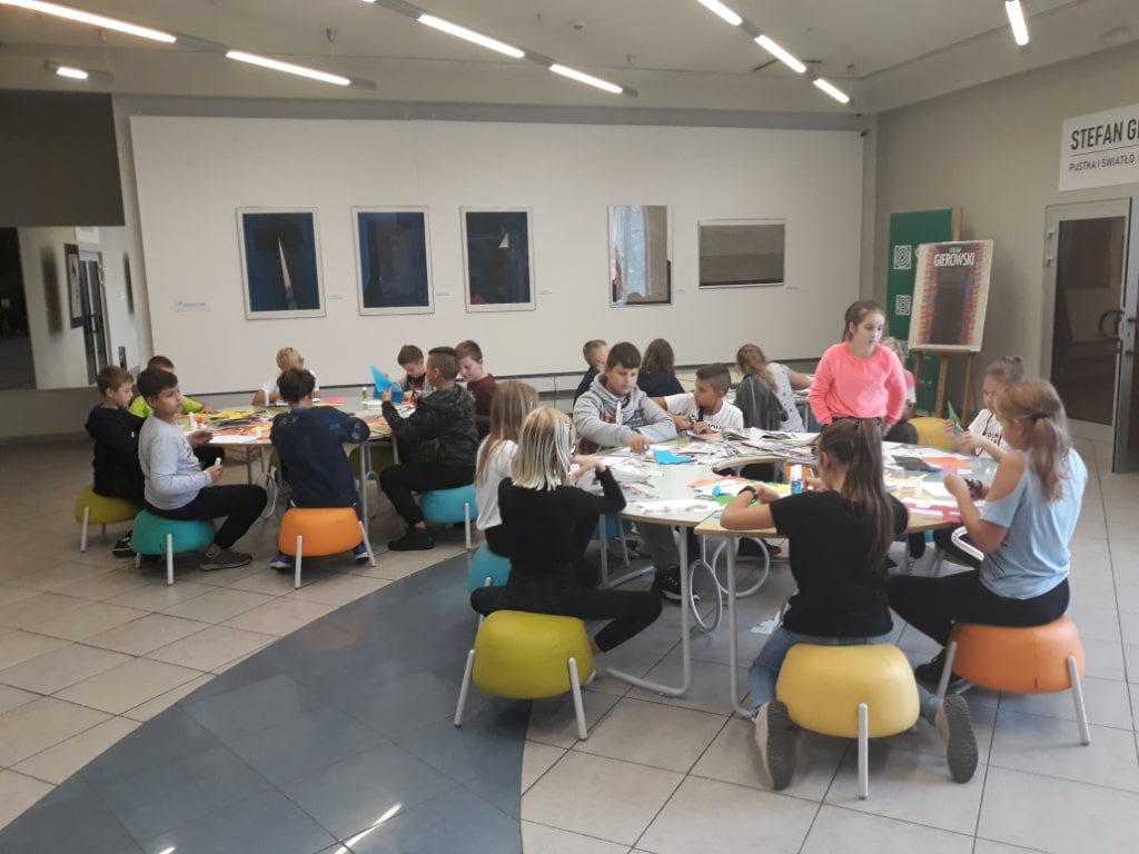 Rzecz o kolorze” to wystawa Stefana Gierowskiego inspirowana światłem. Wystawa jest podzielona na trzy segmenty – każdy w zasadzie odnosi się do grupy zbliżonych problemów niezależnie od czasu ich powstania. Krótko mówiąc – pierwszy dział odnosi się do koloru; do gamy ośmiu kolorów, drugi do świetlistości barwy, trzeci do czerni i bieli. Po obejrzeniu dwóch wystaw udaliśmy się na warsztaty plastyczne. Naszym zadaniem było stworzenie pracy inspirowanej wystawami.
