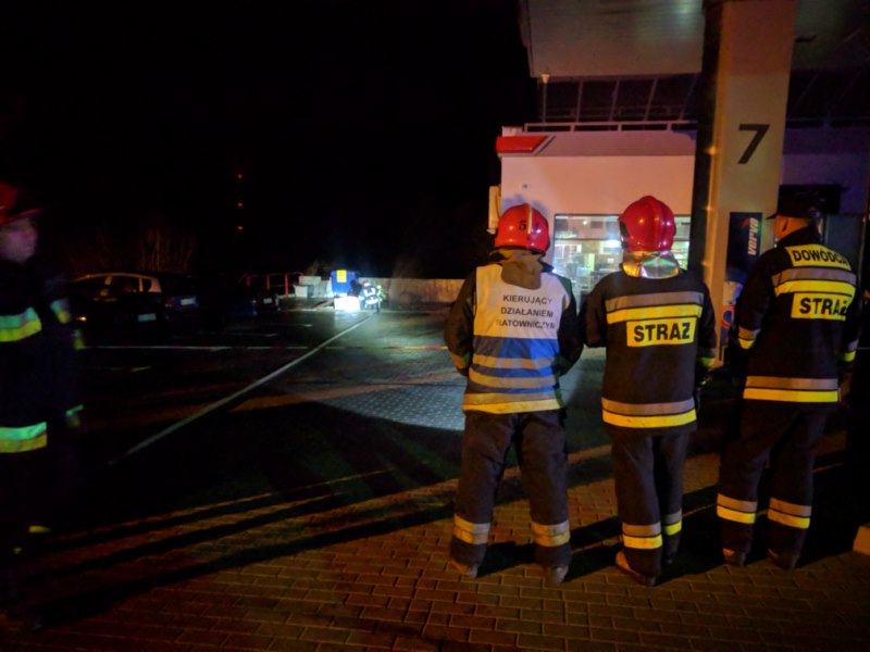 Na miejsce została zadysponowana Specjalistyczna Grupa Ratownictwa Chemicznego Ełk i grupa operacyjna z KW PSP Olsztyn. Miejsce działań podzielono na dwa odcinki bojowe. Pierwszy odcinek odpowiedzialny za likwidację wycieku gazu i monitorowanie pomiarów LPG ,drugi odcinek – działania zabezpieczające oraz roty gaśnicze.