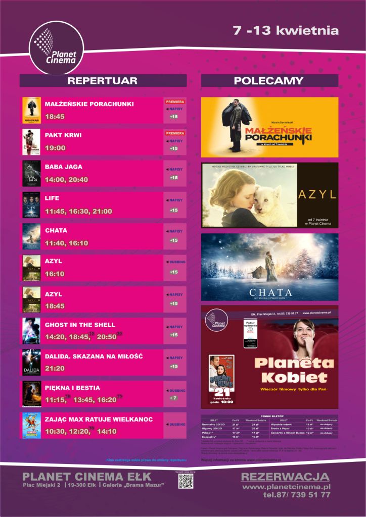 Drodzy Czytelnicy! Mamy dla Was niespodziankę. Do wygrania mamy 6 biletów do Planet Cinema w Ełku na dowolny seans do 30 kwietnia 2017 roku.