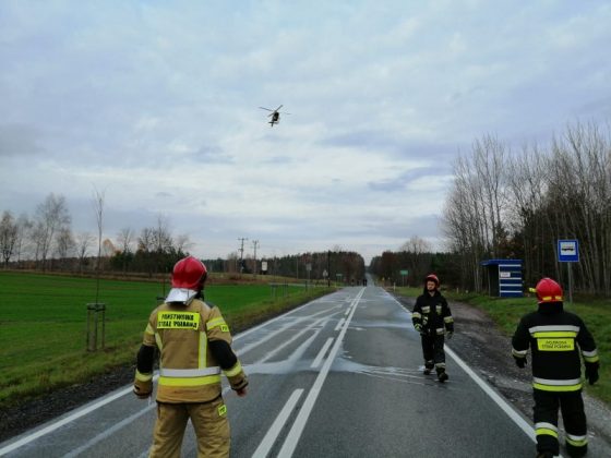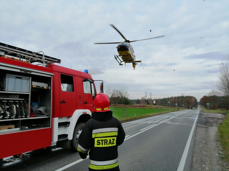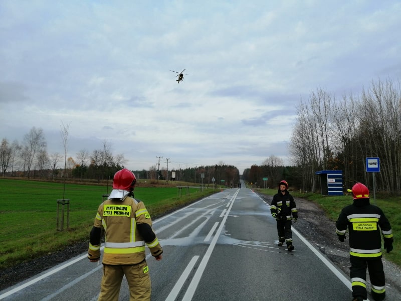 Na miejsce zdarzenia przybyło Lotnicze Pogotowie Ratunkowe, które zabrało poszkodowanego do szpitala w Ełku. W działaniach brały udział trzy zastępy PSP, zastęp Wojskowej Straży Pożarnej z Orzysza oraz zastęp OSP z Orzysza.