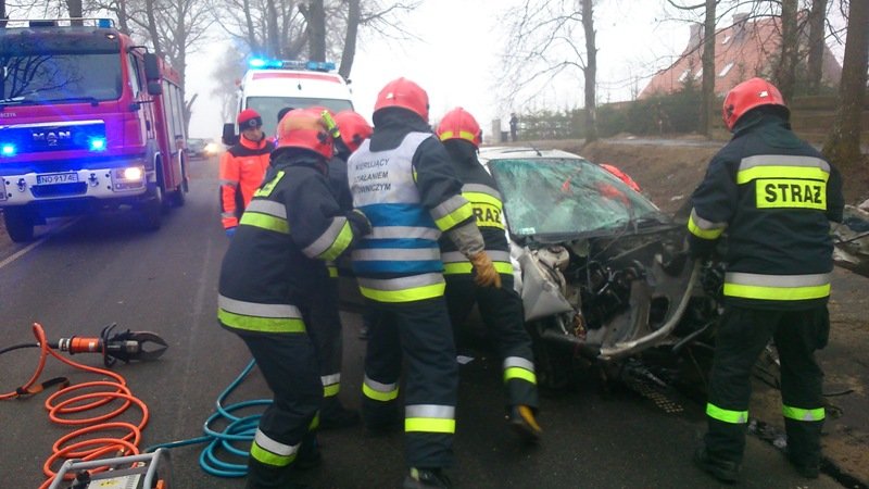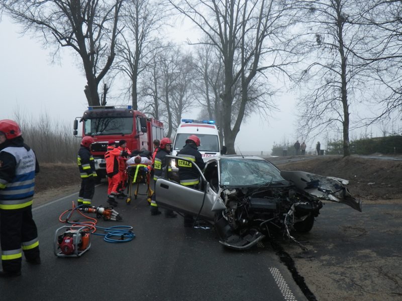 Do zdarzenia bezzwłocznie wyjechali strażacy z Węgorzewa, którzy na miejscu stwierdzili, że samochód osobowy marki Rover 200 uderzył czołowo w przydrożne drzewo. W pojeździe uwięziony był kierowca. W momencie dojazdu straży na miejscu znajdował się Zespół Ratownictwa Medycznego. Strażacy po zabezpieczeniu miejsca zdarzenia wykonali dostęp do poszkodowanego przy pomocy narzędzi hydraulicznych, a następnie wydobyli mężczyznę z pojazdu i przekazali Zespołowi Ratownictwa Medycznego. Pojazdem podróżował tylko kierujący. Utrudnienia w ruchu trwały ponad godzinę. Po zakończeniu działań miejsce zdarzenia przekazano Policji, która bada okoliczności w jakich doszło do wypadku.