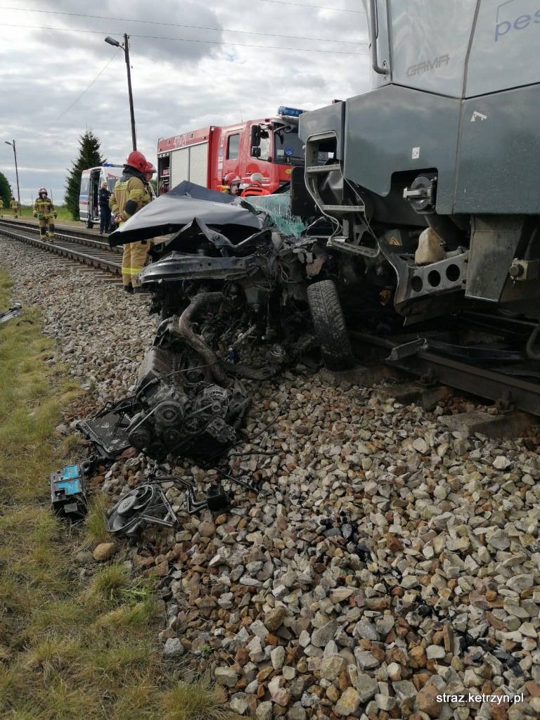 Do wypadku doszło dziś około godziny 16. Z nieznanych powodów, na niestrzeżonym przejeździe kolejowym, samochód marki opel vectra znalazł się na torach w momencie przejazdu pociągu. Autem podróżowały 4 osoby – 21-letni kierowca oraz pasażerowie w wieku 43, 23 lat i 12 lat.