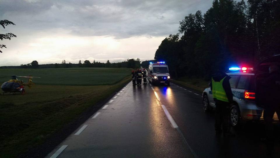 -Po dotarciu na miejsce zdarzenia okazało się, że samochód, którym podróżowało czterech mężczyzn uderzył w drzewo i wpadł do przydrożnego rowu. Jeden z nich z nieznanych przyczyn oddalił się z miejsca zdarzenia. Na miejsce dotarły też dwa zastępy z JRG Pisz oraz zastęp OSP Odoje. Zadysponowano też dwa zespoły ratownictwa medycznego z Orzysza i z Giżycka. Najbardziej poszkodowanego w wypadku pasażera rozbitego pojazdu zabrał do Olsztyna śmigłowiec Lotniczego Pogotowia Ratunkowego. Do akcji poszukiwawczej zbiegłego z miejsca zdarzenia mężczyzny oprócz już zadysponowanych służb skierowano dodatkowe patrole policji. Mężczyznę udało się odnaleźć w pobliskim lesie. Trasa Orzysz – Giżycko była zablokowana- relacjonują strażacy z OSP Orzysz.