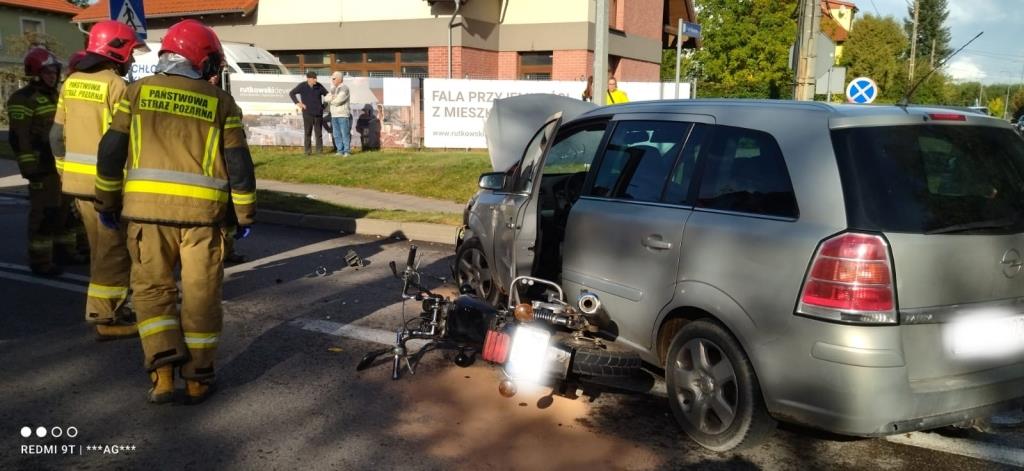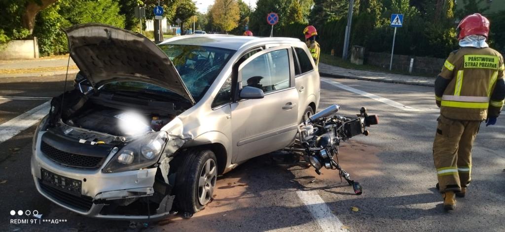 We wtorek (20.09.) doszło do groźnego wypadku na skrzyżowaniu ulic Białostocka/Gdańska w Giżycku. Motocyklista zderzył się z kierującą autem osobowym.