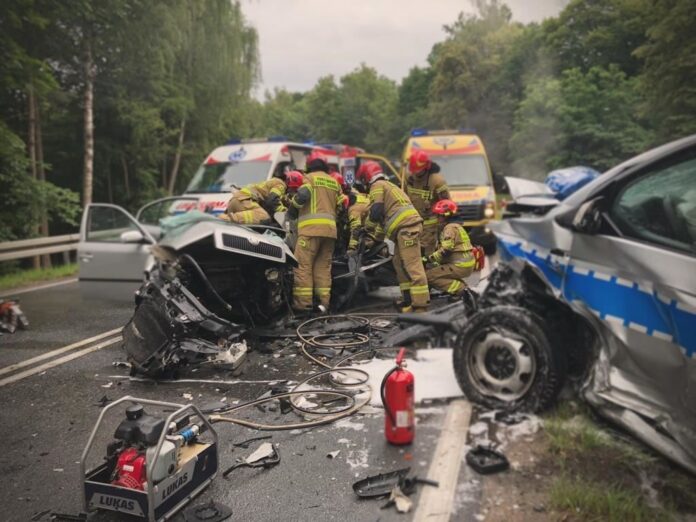– Ze wstępnych ustaleń wynika, że 25-letni kierowca skody zjechał na przeciwległy pas ruchu i zderzył się czołowo z policyjnym radiowozem – przekazuje st. asp. Iwona Chruścińska, oficer prasowy KPP Giżycko.