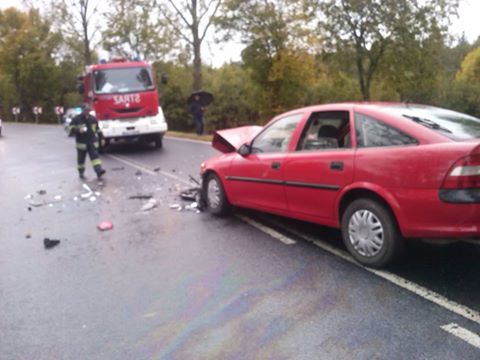 Wypadek trzech samochodów na trasie Giżycko-Węgorzewo
