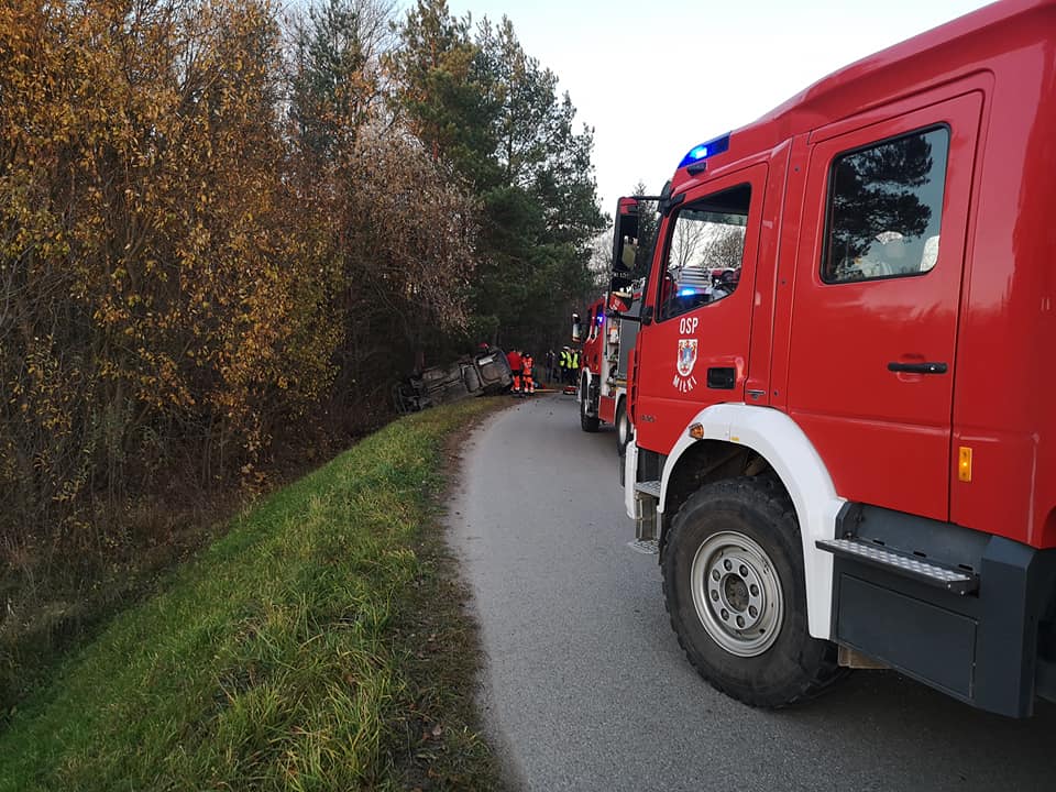 – Jedna osoba opuściła samochód o własnych siłach, drugą osobę strażacy musieli wyciągnąć przy pomocy narzędzi hydraulicznych – informują druhowie z OSP Miłki
