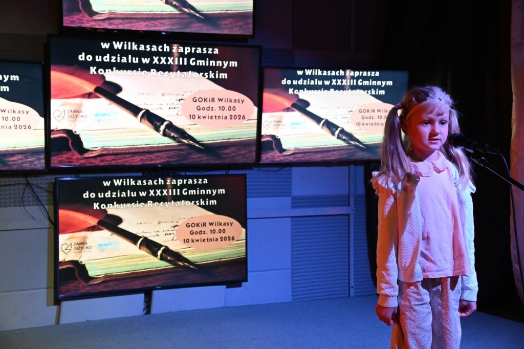 Ponad 30 uczniów ze szkół podstawowych w Upałtach, Spytkowie, Bystrym oraz Wilkasach, a także Szkoły Podstawowej nr 3 w Giżycku z Oddziałami Integracyjnymi i Mikroszkoły Edukacja z Wartościami uczestniczyło w XXXIII edycji Gminnego Konkursu Recytatorskiego w Wilkasach.