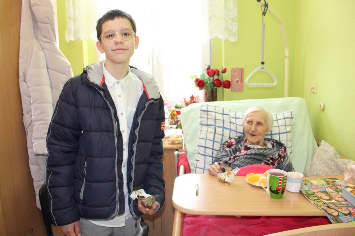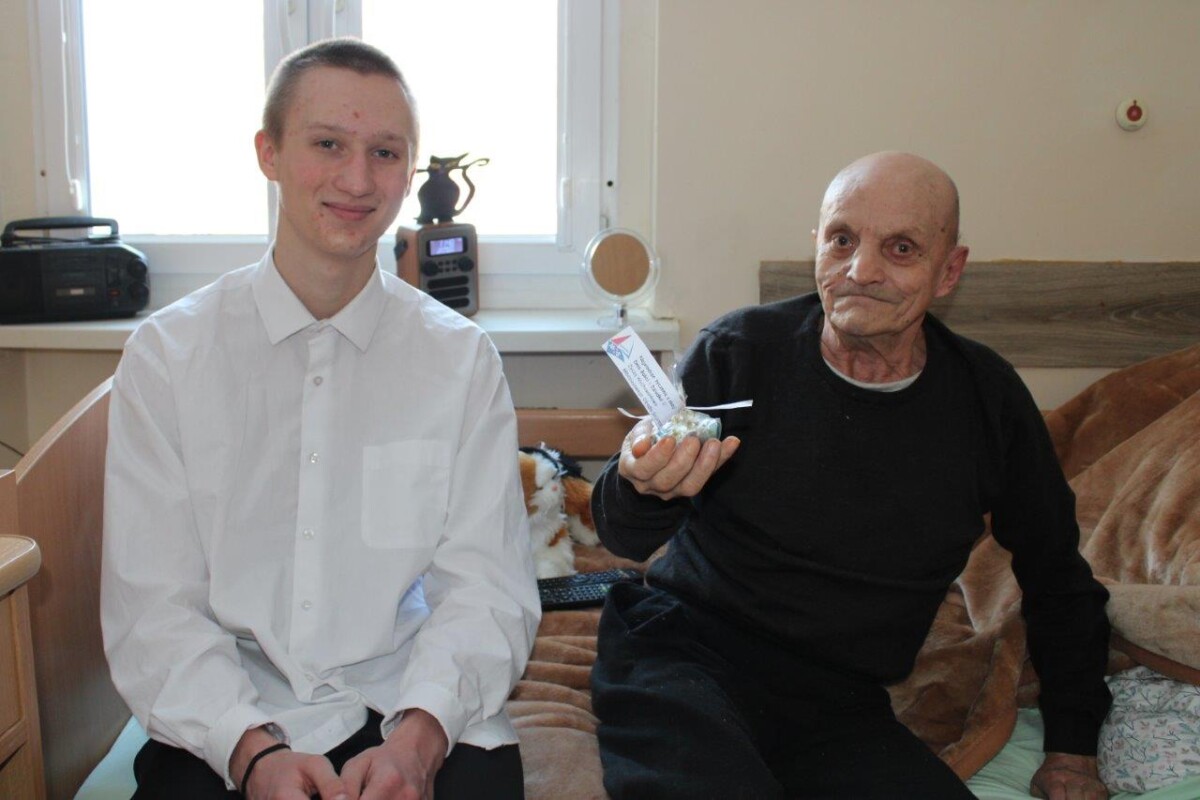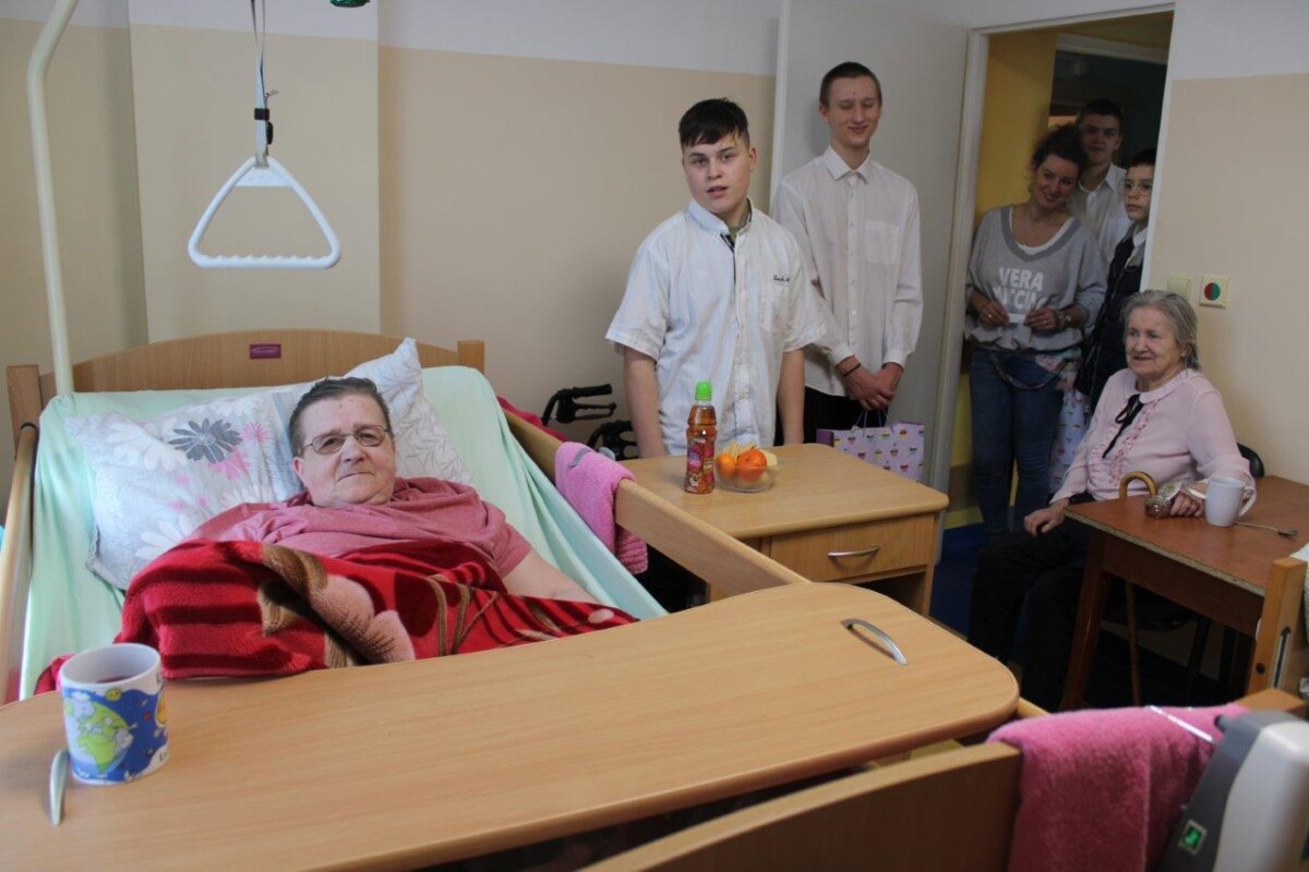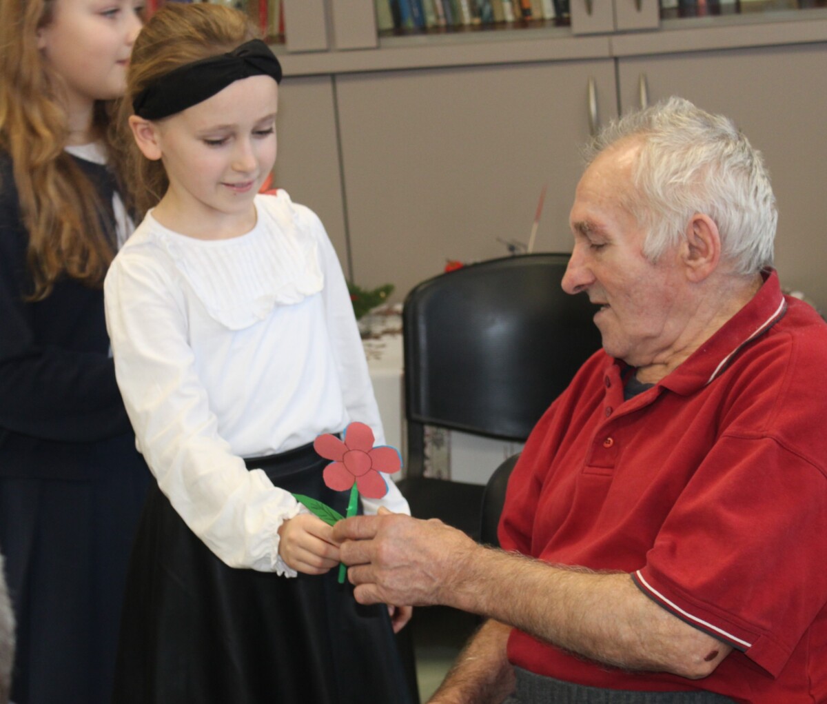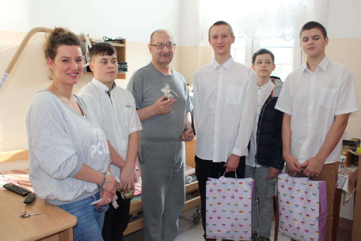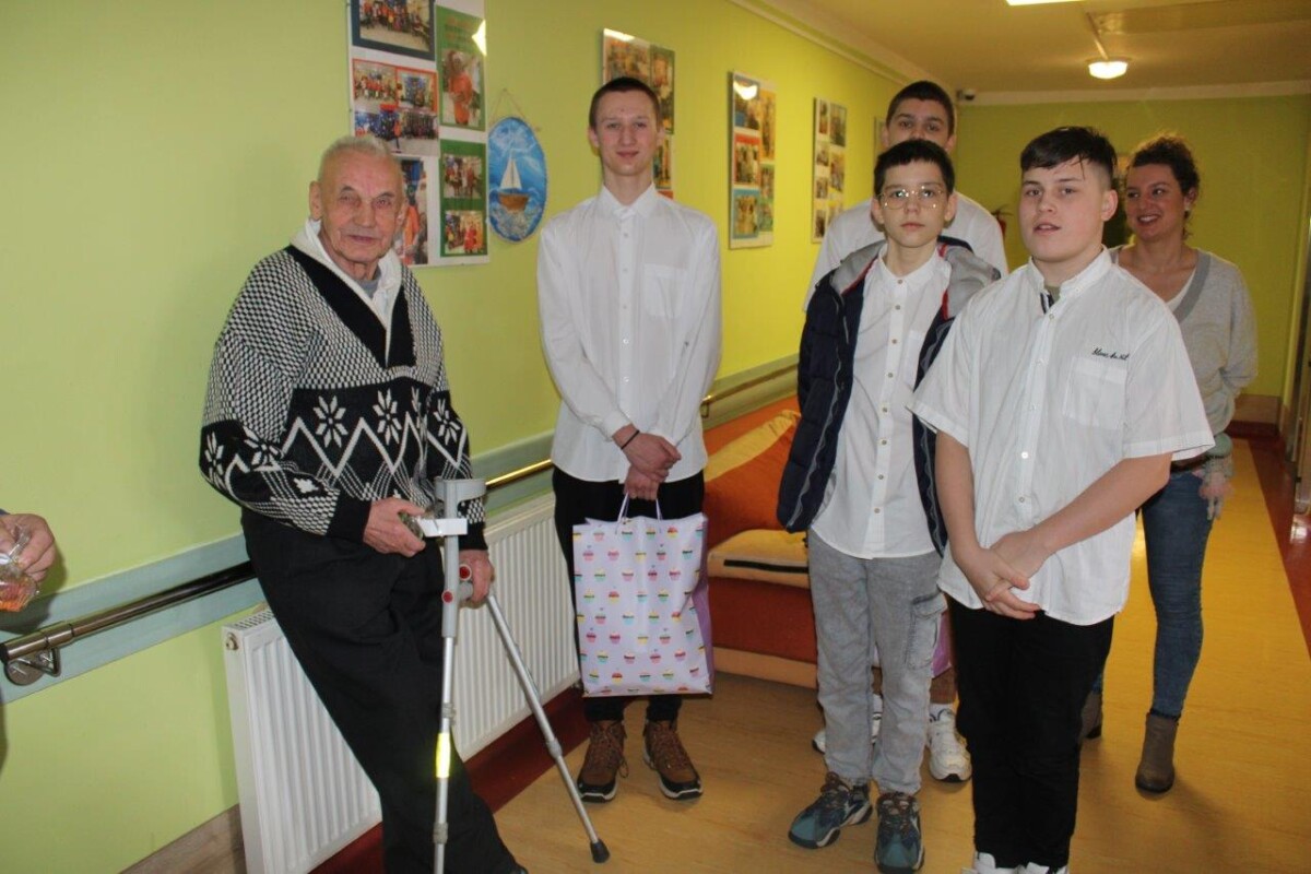 Nie zabrakło występów artystycznych, które wywołały uśmiech na twarzach mieszkańców DPS. Uczniowie zaśpiewali piosenki i wręczyli własnoręcznie wykonane kartki.
