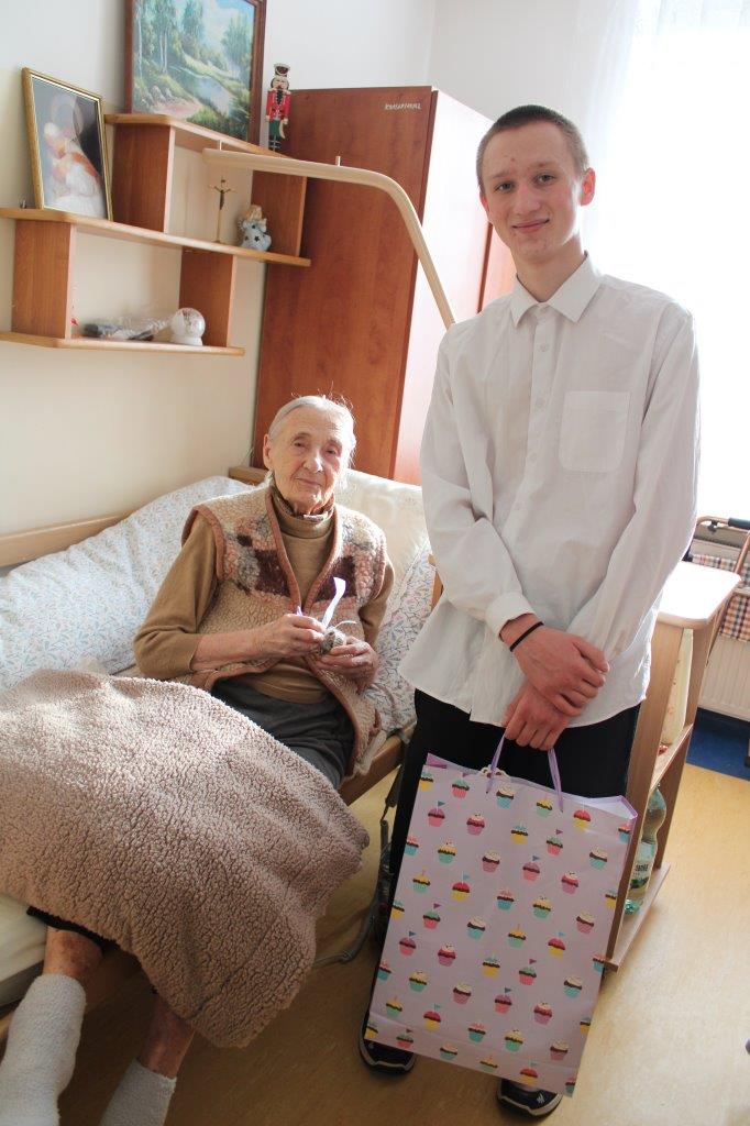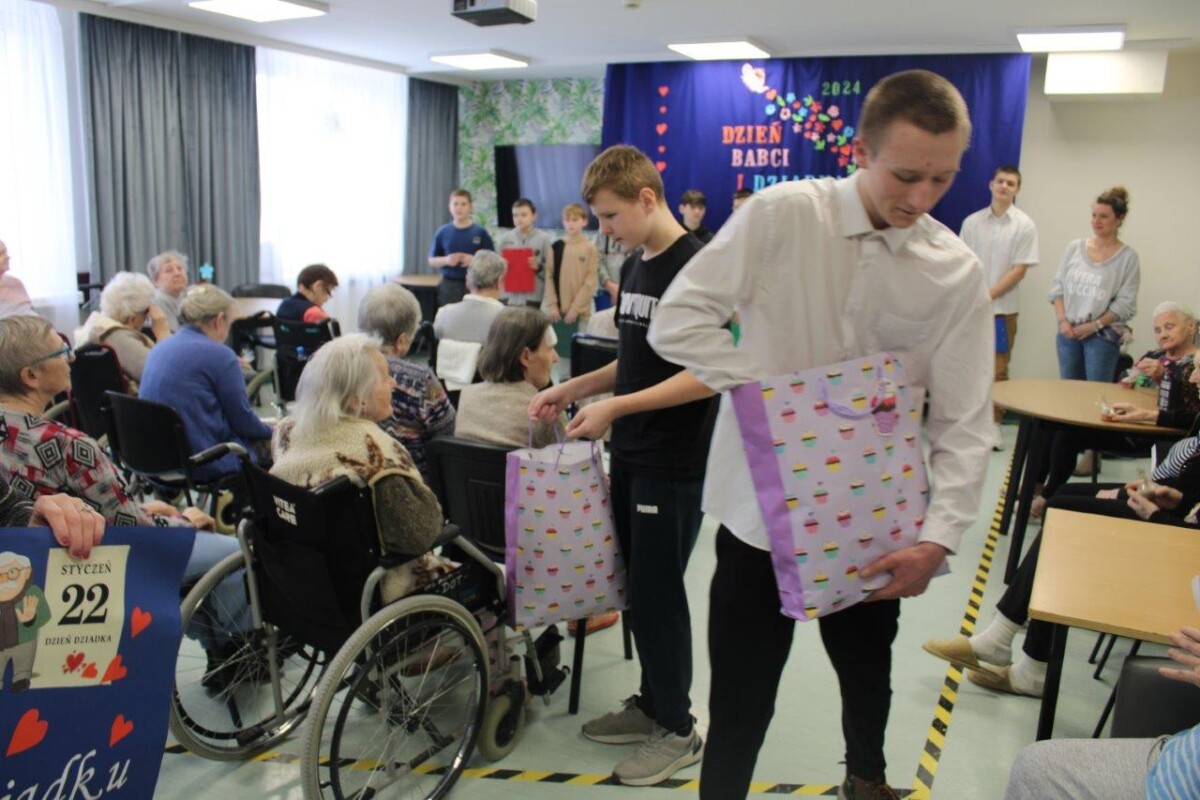 Wychowankowie Młodzieżowego Ośrodka Socjoterapii w Giżycku oraz Uczniowie klasy III A ze Szkoły Podstawowej nr 2 w Giżycku z okazji Dnia Babci i Dziadka odwiedzili mieszkańców Domu Pomocy Społecznej w Giżycku.