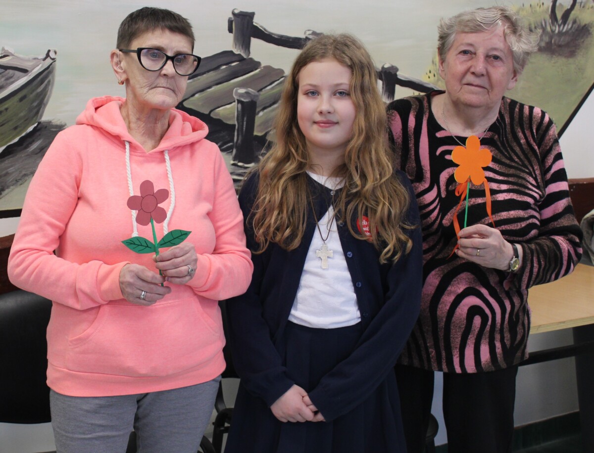 Młodzież i dzieci złożyły życzenia podopiecznym DPS, co wywołało wzruszenie wśród seniorów. Atmosfera napełniła się ciepłem i wzajemnym szacunkiem. Każdy otrzymał słodką niespodziankę – własnoręcznie upieczoną babeczkę.