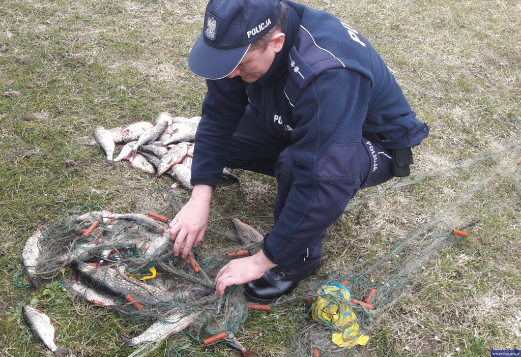Węgorzewscy kryminalni podczas wykonywania swoich codziennych obowiązków służbowych ustalili, iż na rzece Sapina dochodzi do nielegalnego połowu ryb. By zweryfikować te informacje wczoraj (14.03.2017) wieczorem przeprowadzili kontrolę tych okolic. Jak się okazało pozyskane przez funkcjonariuszy informacje były prawdziwe. Za pomocą noktowizora kryminalni zauważyli na rzece ponton, a w nim mężczyznę ściągającego sieci. Z uwagi na brak możliwości zatrzymania sprawcy na akwenie, funkcjonariusze zatrzymali po tym jak wrócił na brzeg do swojego samochodu. W trakcie kontroli pojazdu policjanci zabezpieczyli znaleziony w bagażniku mokry ponton, wiosła oraz worek, a w nim sieć rybacką z rybami.