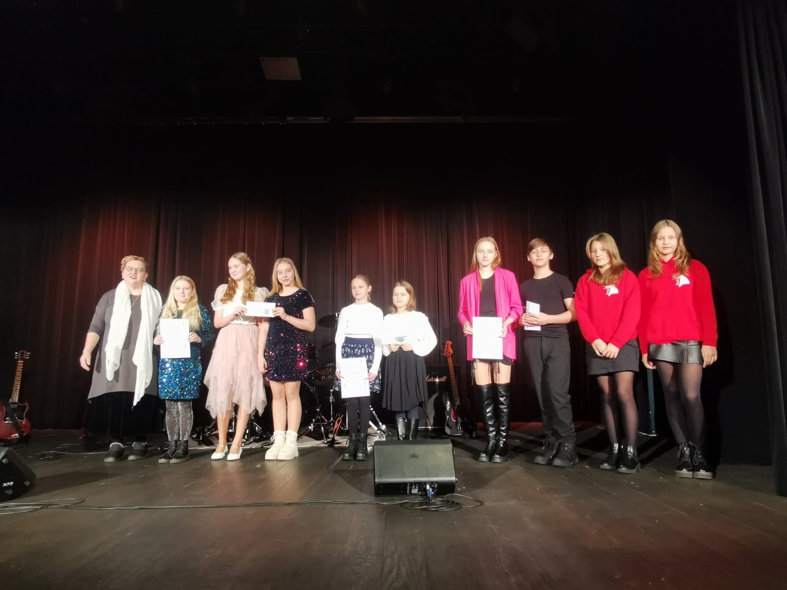 Laureaci XXIV Przeglądu solistów i zespołów dziecięcych i młodzieżowych oraz muzykujących rodzin powiatu giżyckiego „Śpiewadło 2022”.