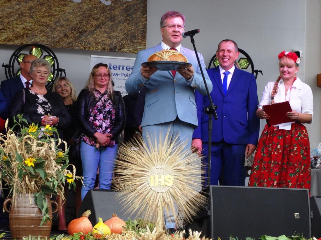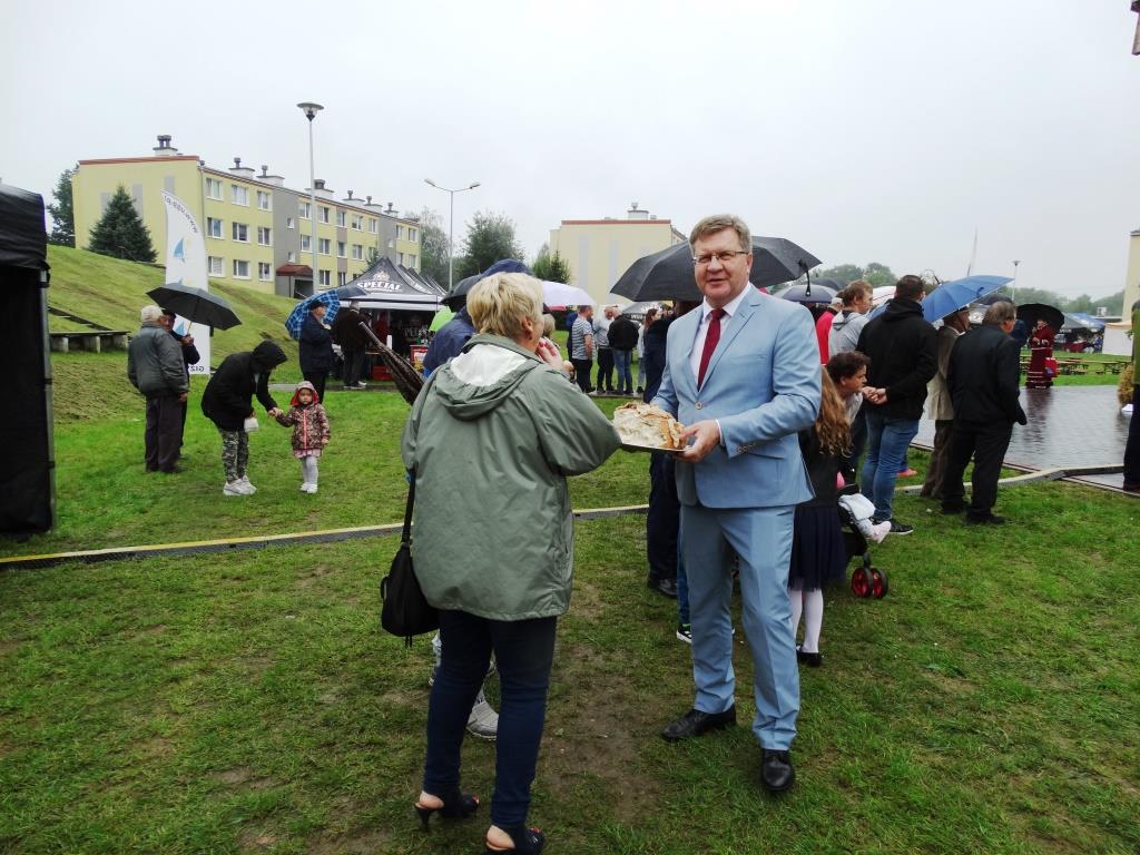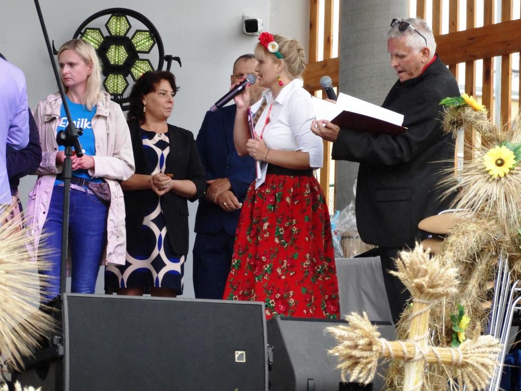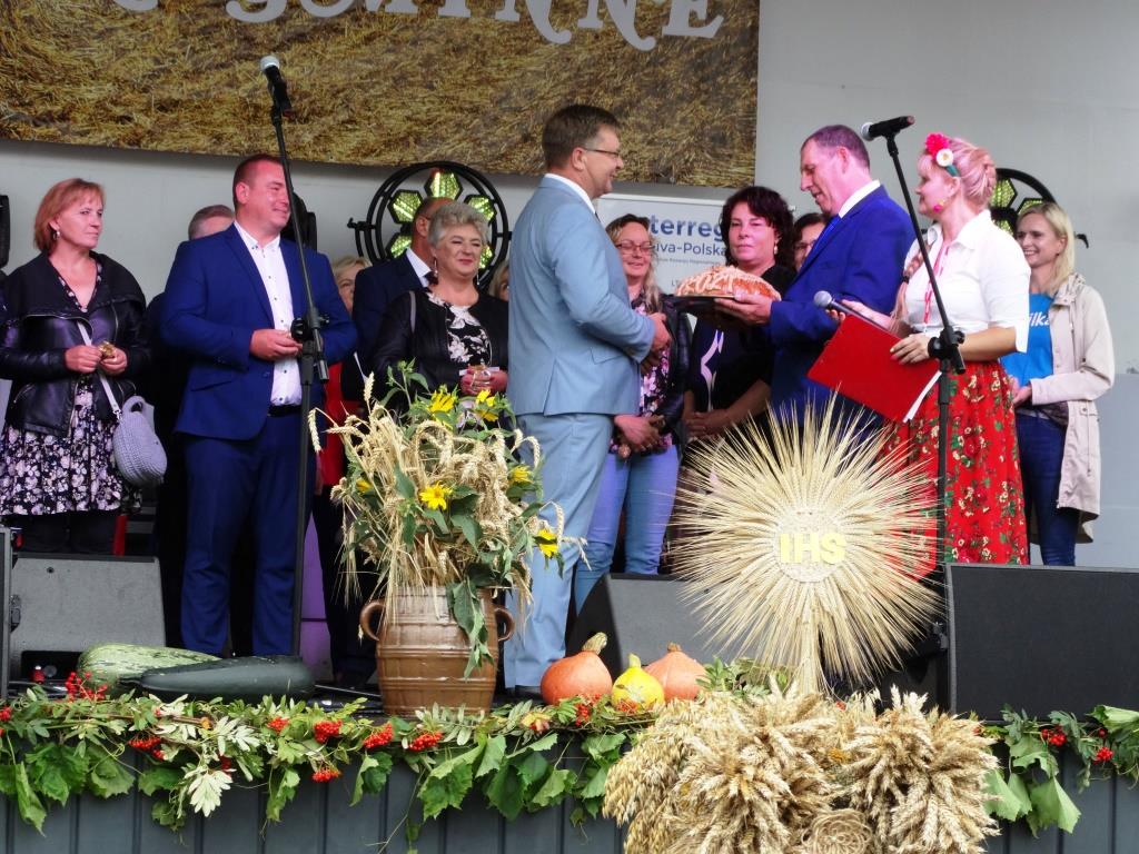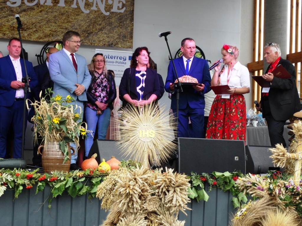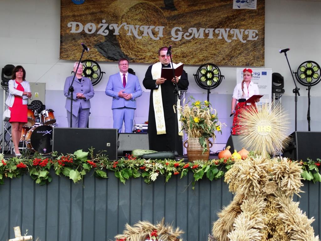 Po nabożeństwie, przybyłych gości przywitał Wójt Gminy Giżycko Marek Jasudowicz. Podkreślił on trud pracy rolników oraz wyraził wdzięczność za ich poświęcenie, którego efektem jest chleb na naszych stołach. Gospodarz dożynek otrzymał dar od Starosty i Starościny Dożynek w postaci bochna chleba.