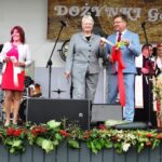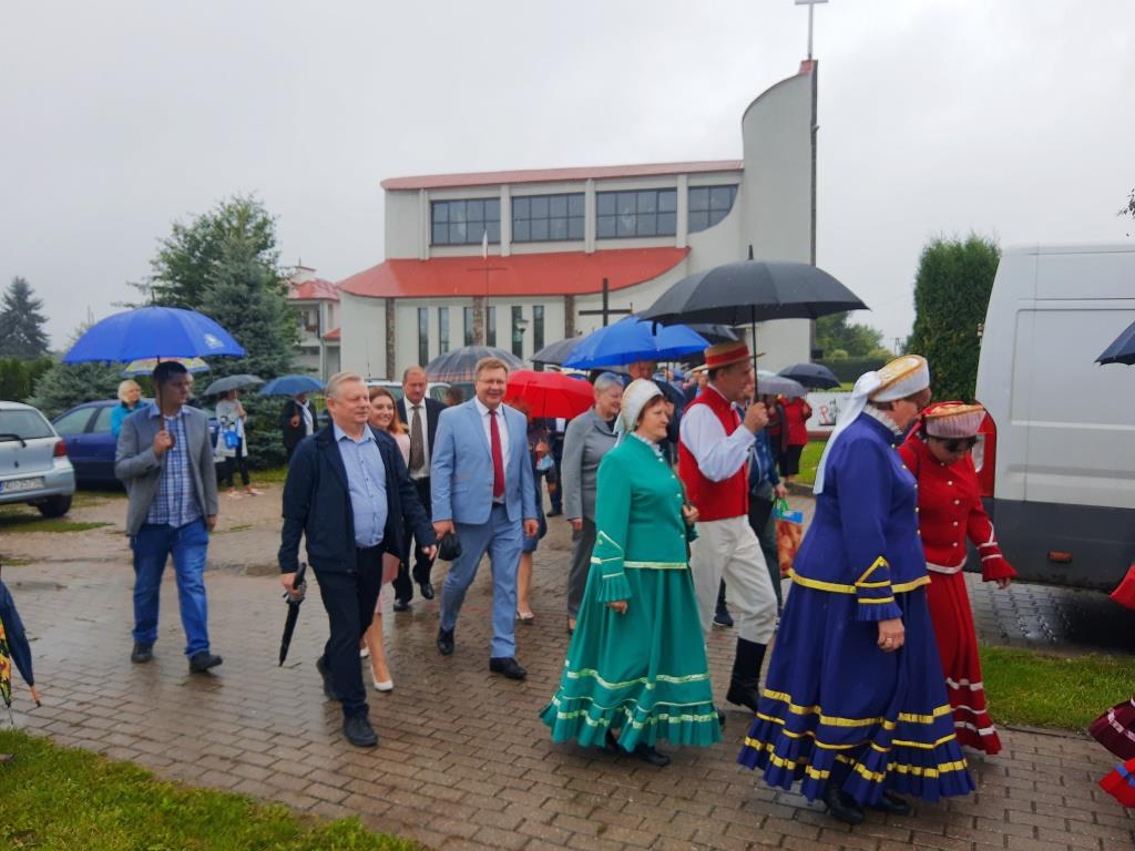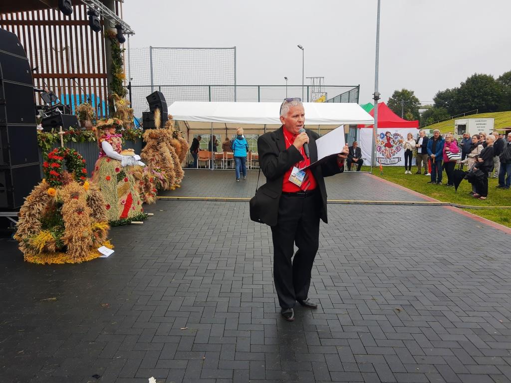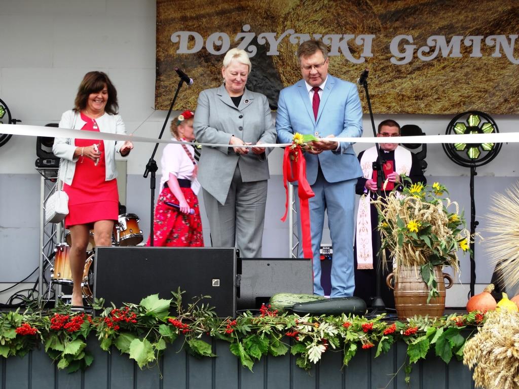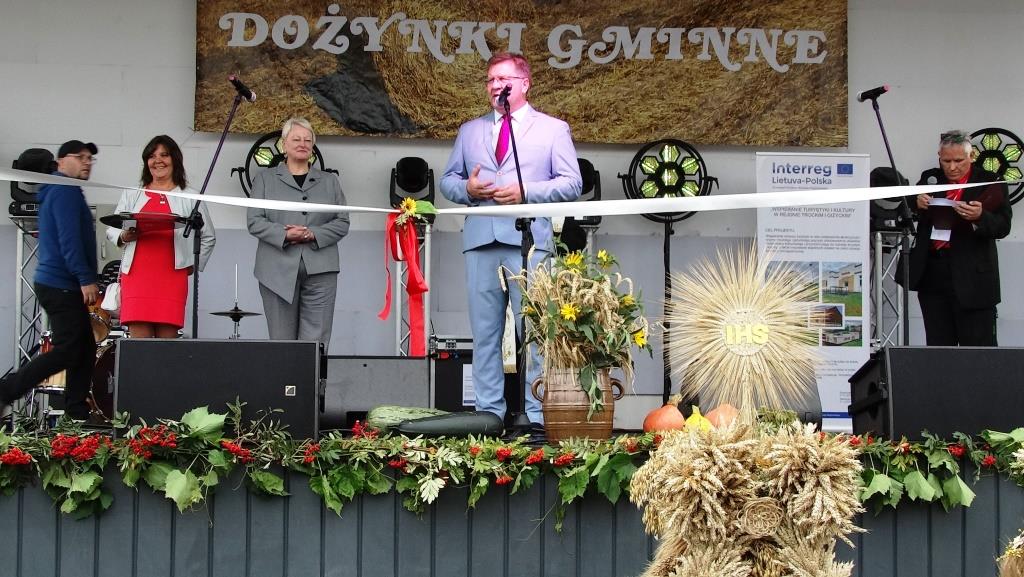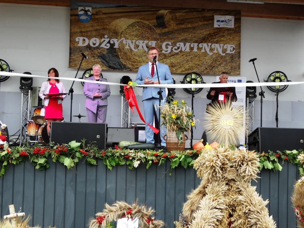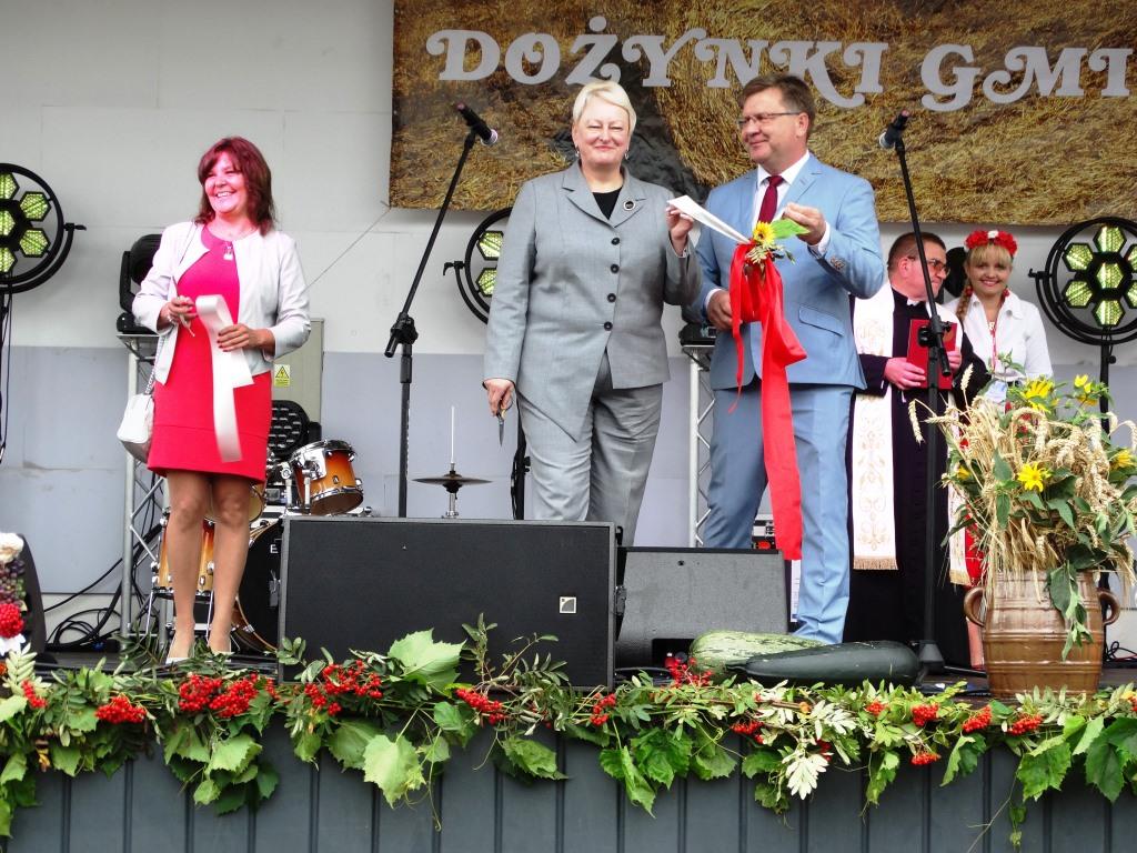 Po nabożeństwie, przybyłych gości przywitał Wójt Gminy Giżycko Marek Jasudowicz. Podkreślił on trud pracy rolników oraz wyraził wdzięczność za ich poświęcenie, którego efektem jest chleb na naszych stołach. Gospodarz dożynek otrzymał dar od Starosty i Starościny Dożynek w postaci bochna chleba.