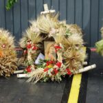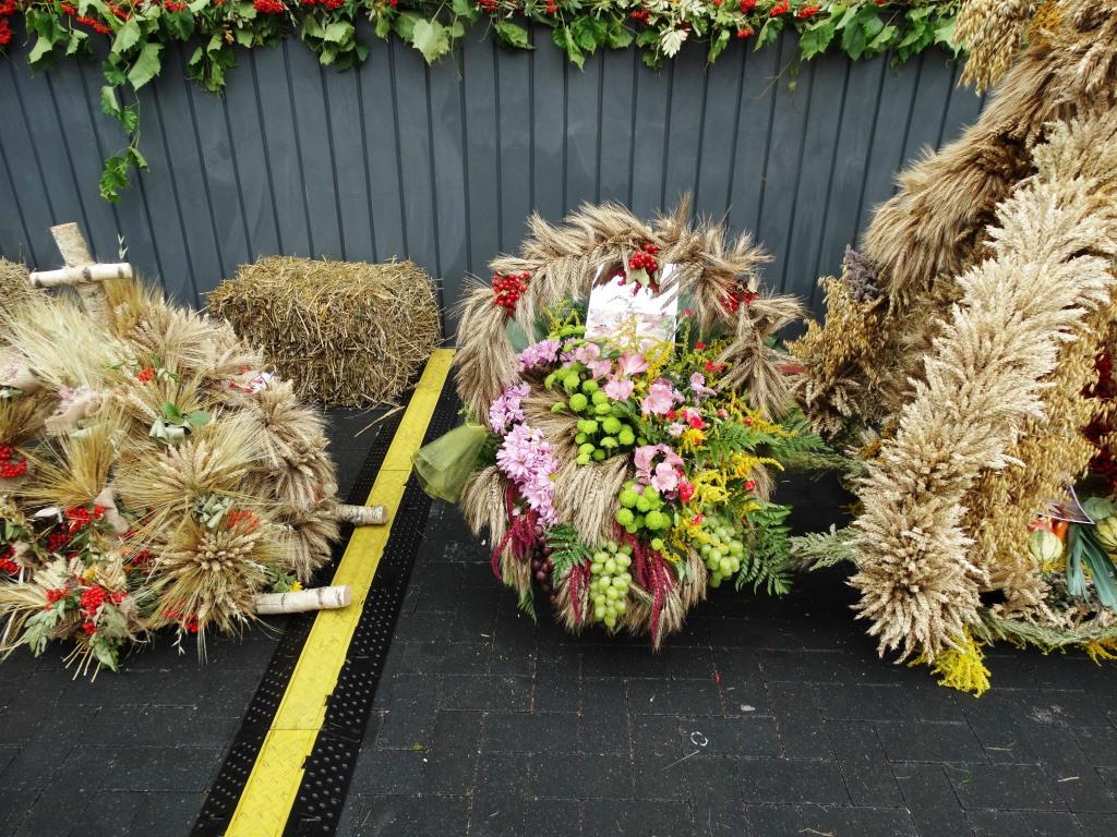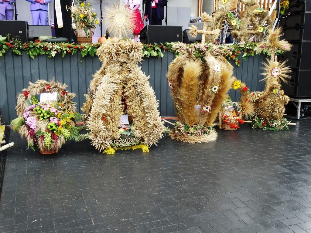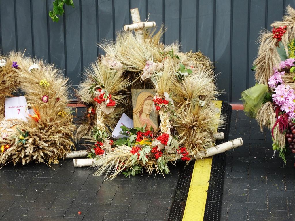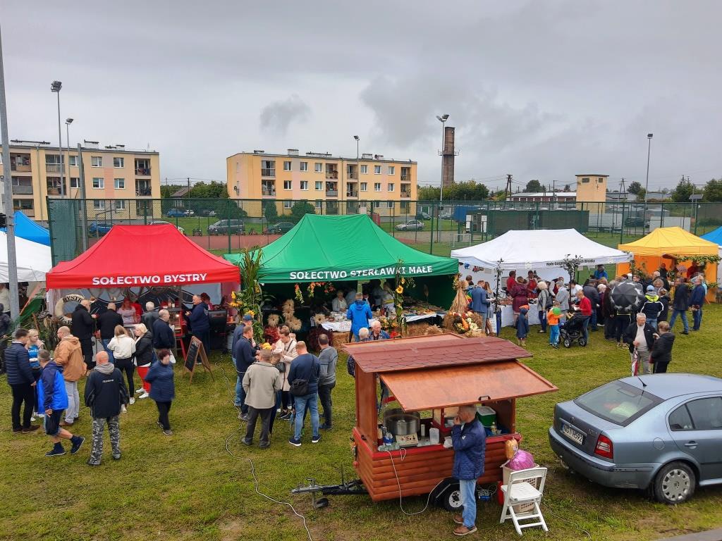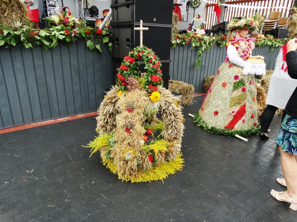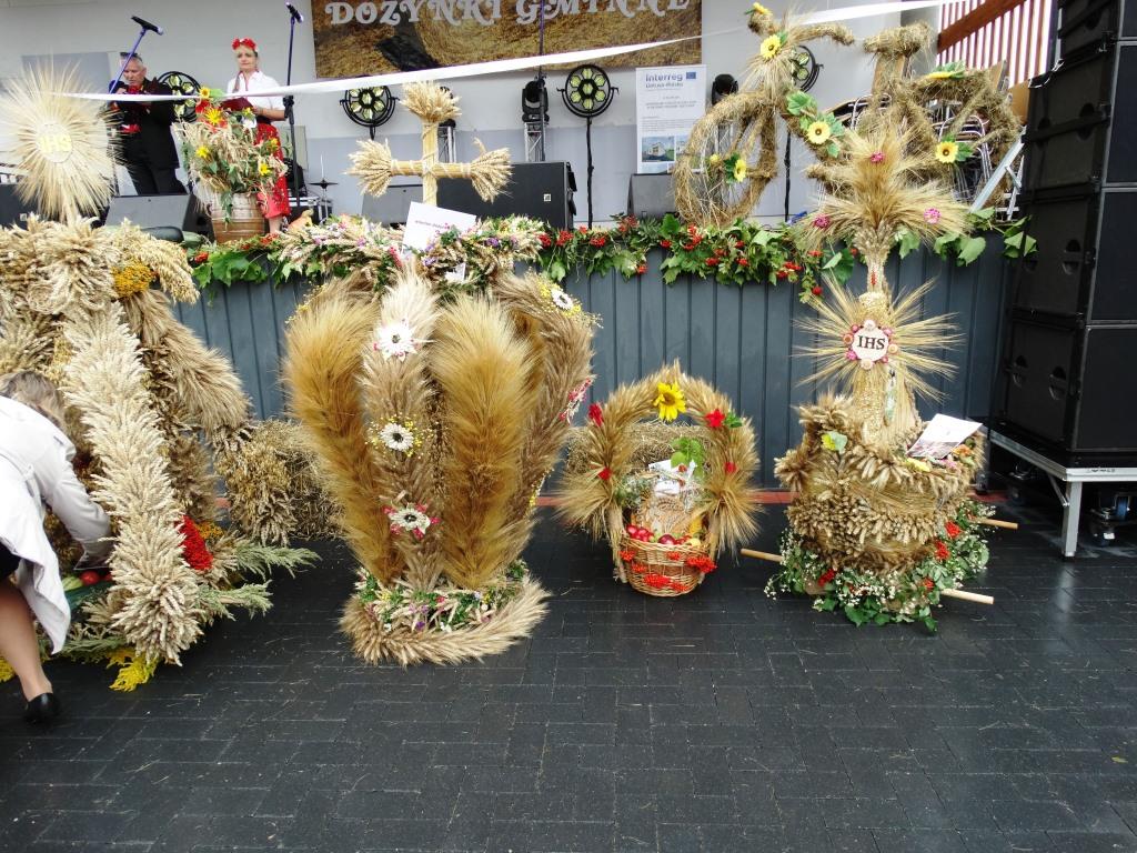 Podczas festynu, który odbył się po oficjalnej części wydarzenia, można było podziwiać piękne wieńce żniwne, zachwycające bogactwem i różnorodnością mieniących się barw, biorące udział w gminnym konkursie na najładniejszy wieniec dożynkowy. Na przybyłych gości czekały także stoiska przygotowane przez sołectwa.