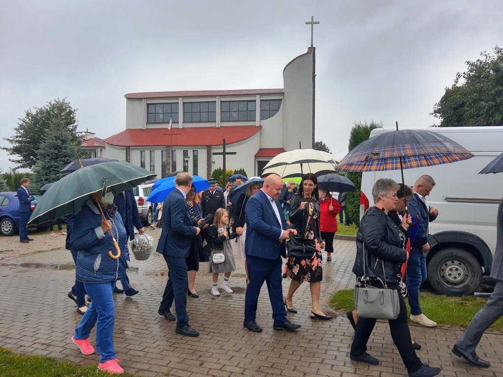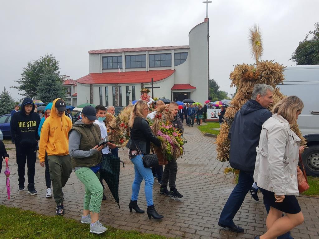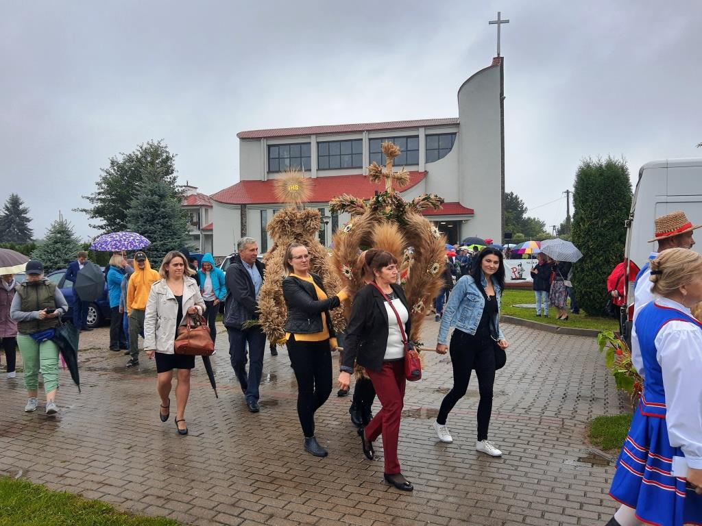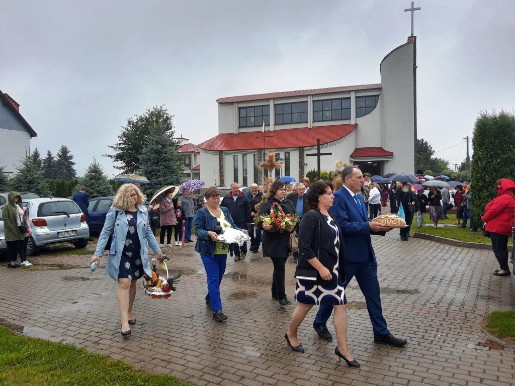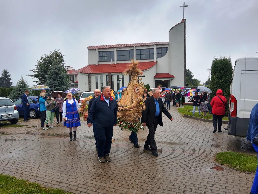 Uroczystości dożynkowe rozpoczęto Mszą Świętą Dziękczynną, którą odprawił Proboszcz Parafii pw. św. Jadwigi Królowej w Bystrym.