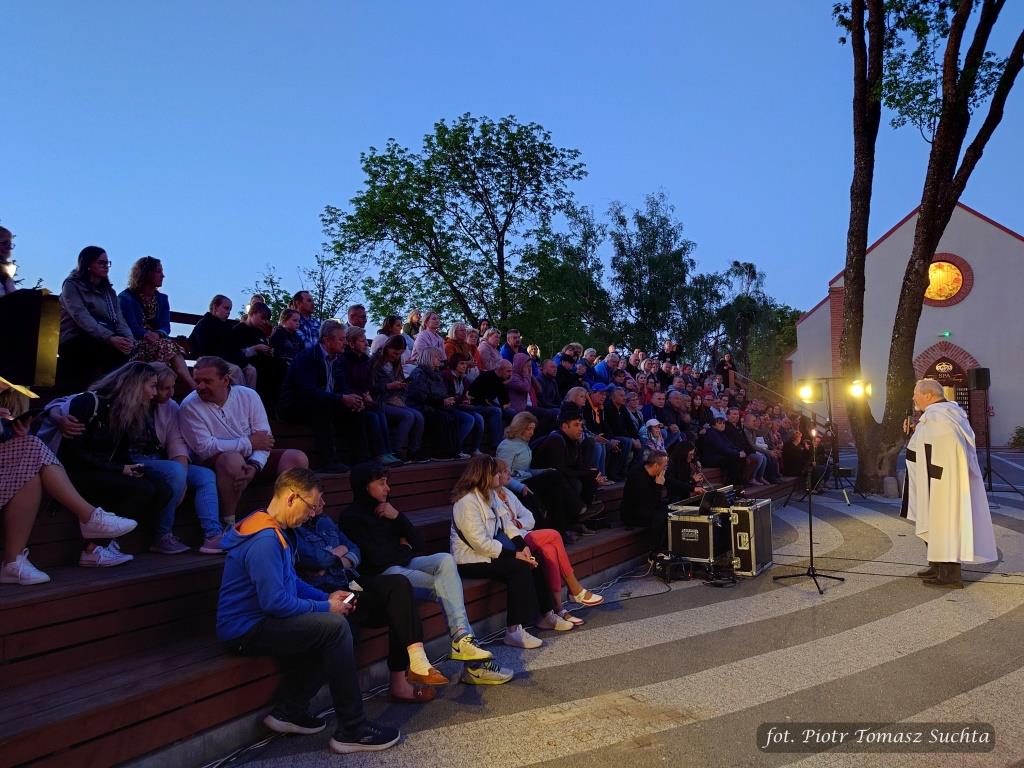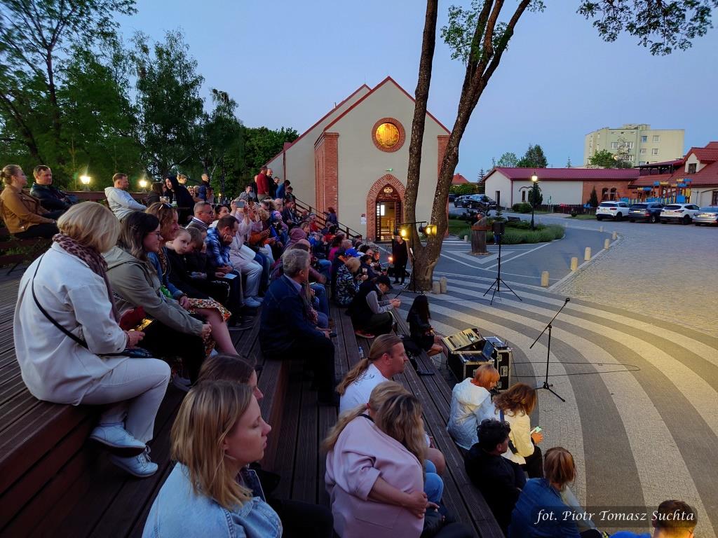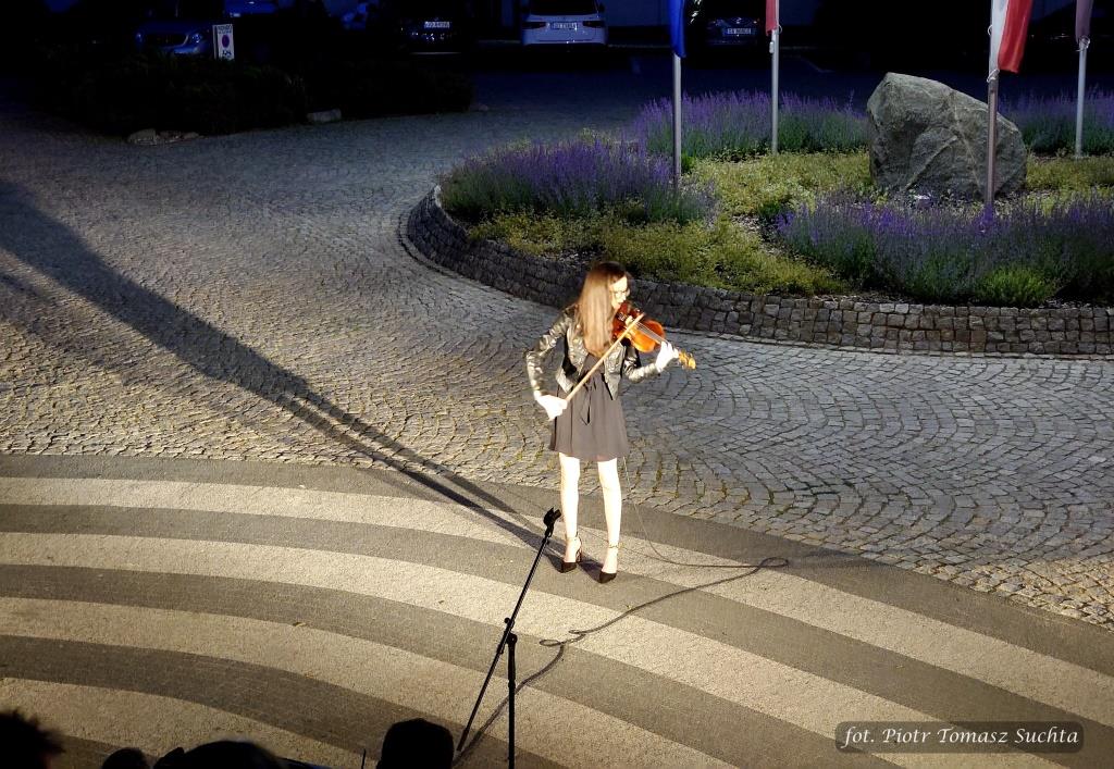Kolejną atrakcją wieczoru był koncert skrzypcowy Żanety Bucholskiej. Repertuar obejmował współczesne aranżacje znanych utworów, które w połączeniu z blaskiem księżyca i w otoczeniu historycznych murów stworzyły iście magiczną atmosferę. Tuż po występie goście udali się na parking przy kaplicy Kościoła Ewangelickiego gdzie obejrzeli dwa filmy o historii Rynu i miejscach pamięci, których już nie ma.