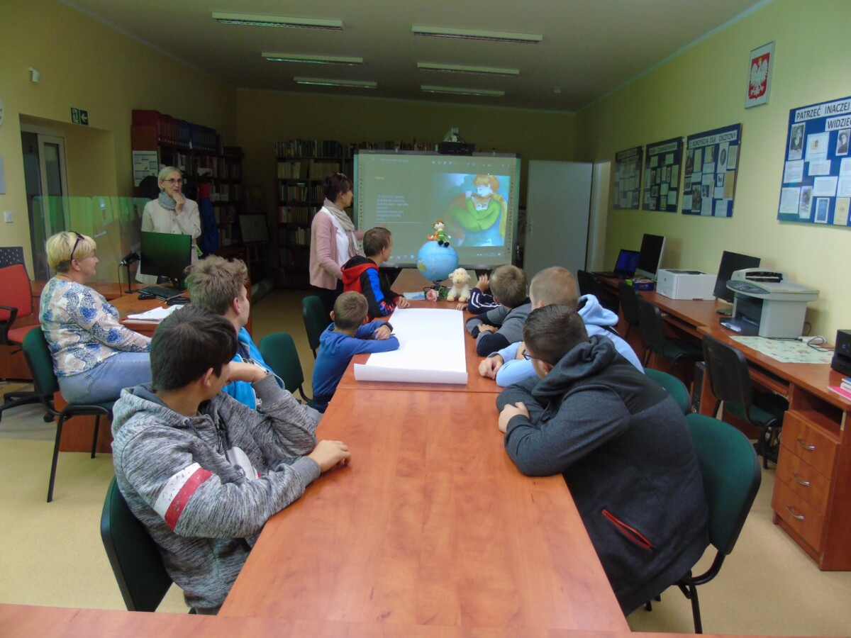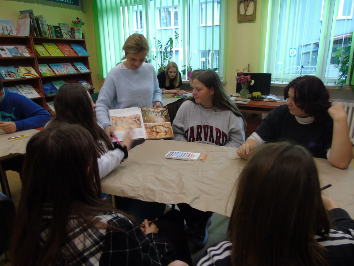 Natomiast młodzież Zespołu Szkół Zawodowych podczas wizyty w Powiatowej Bibliotece Pedagogicznej w Giżycku przeniosła się w przeszłość i stworzyła piękne prace w klimacie malowideł jaskiniowych. Na koniec zajęć młodzież zainteresowała się współczesną formą sztuki obrazkowej tzw. „picturebookami” dostępnymi w bibliotece.