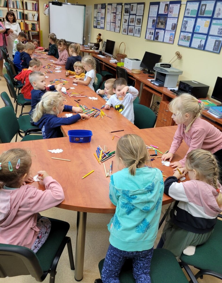 Grupa 4-latków z Przedszkola Miejskiego nr 4 w Giżycku wzięła udział w zajęciach bibliotecznych w Powiatowej Bibliotece Pedagogicznej w Giżycku.