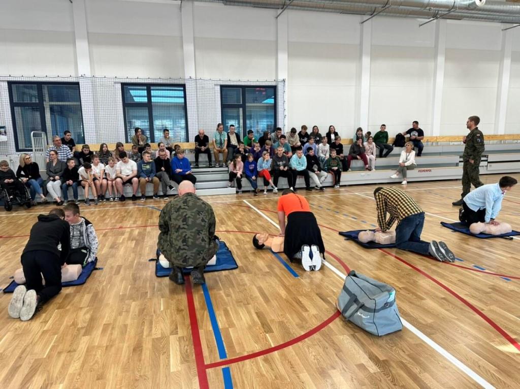 30 września w sali sportowej Specjalnego Ośrodka Szkolno-Wychowawczego w Giżycku odbyły się zajęcia z udzielania pierwszej pomocy. Pokaz udzielania pierwszej pomocy przedmedycznej uczniom klas 4-8 Szkoły Podstawowej oraz Szkoły Branżowej prezentowali żołnierze z Zespołu Ewakuacji Medycznej z 2 Batalionu Zmechanizowanego 15 Giżyckiej Brygady Zmechanizowanej im. Zawiszy Czarnego.